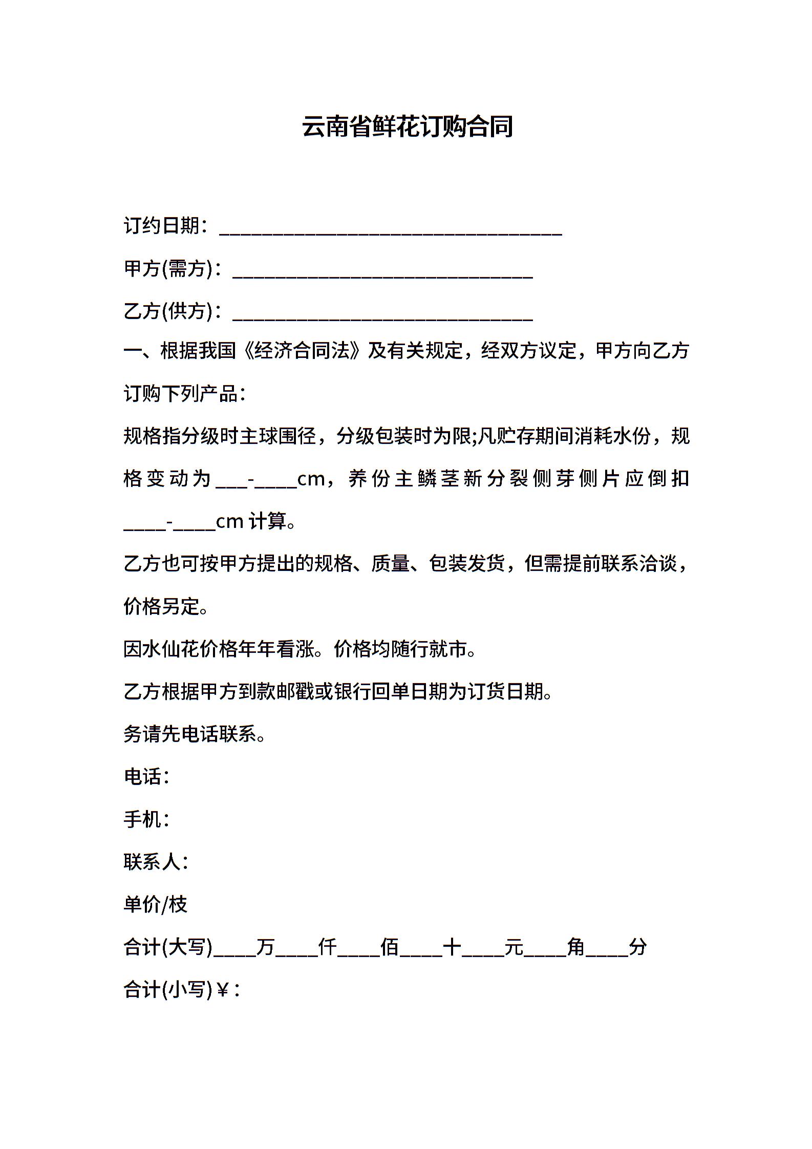 云南省鲜花订购合同