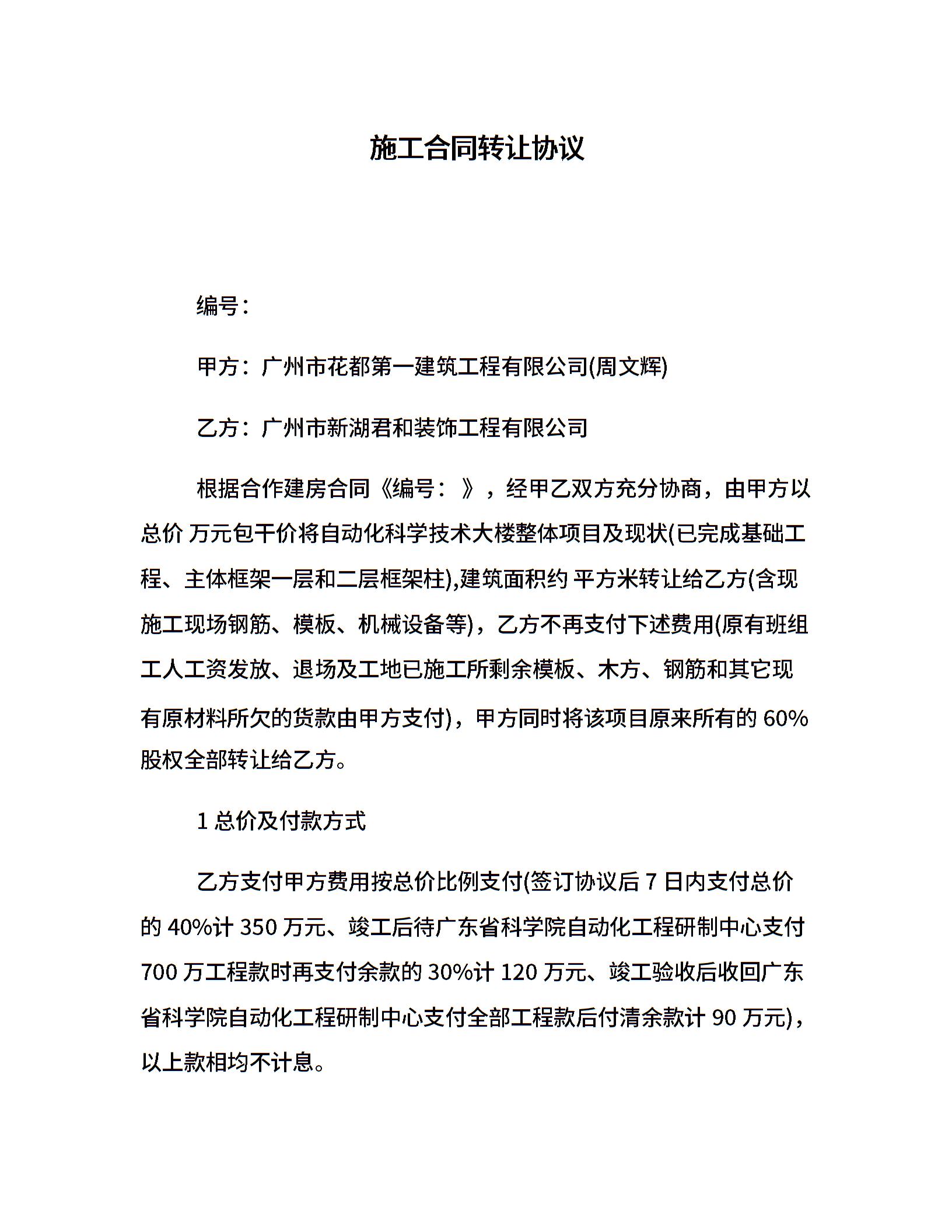 当前位置:量子办公 > 合同模板 > 转让合同 >