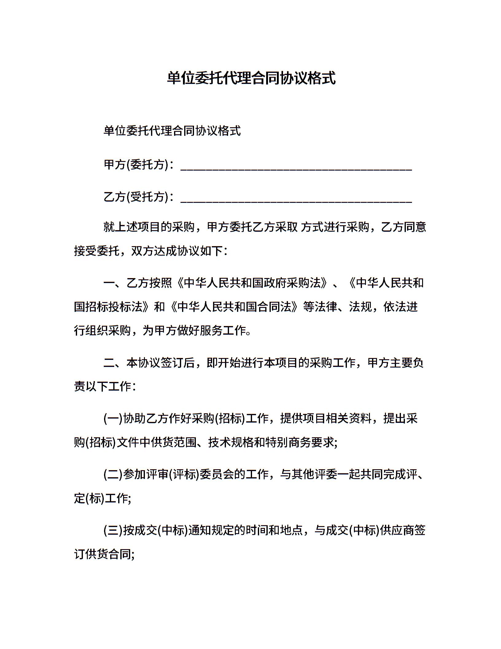 单位委托代理合同协议格式