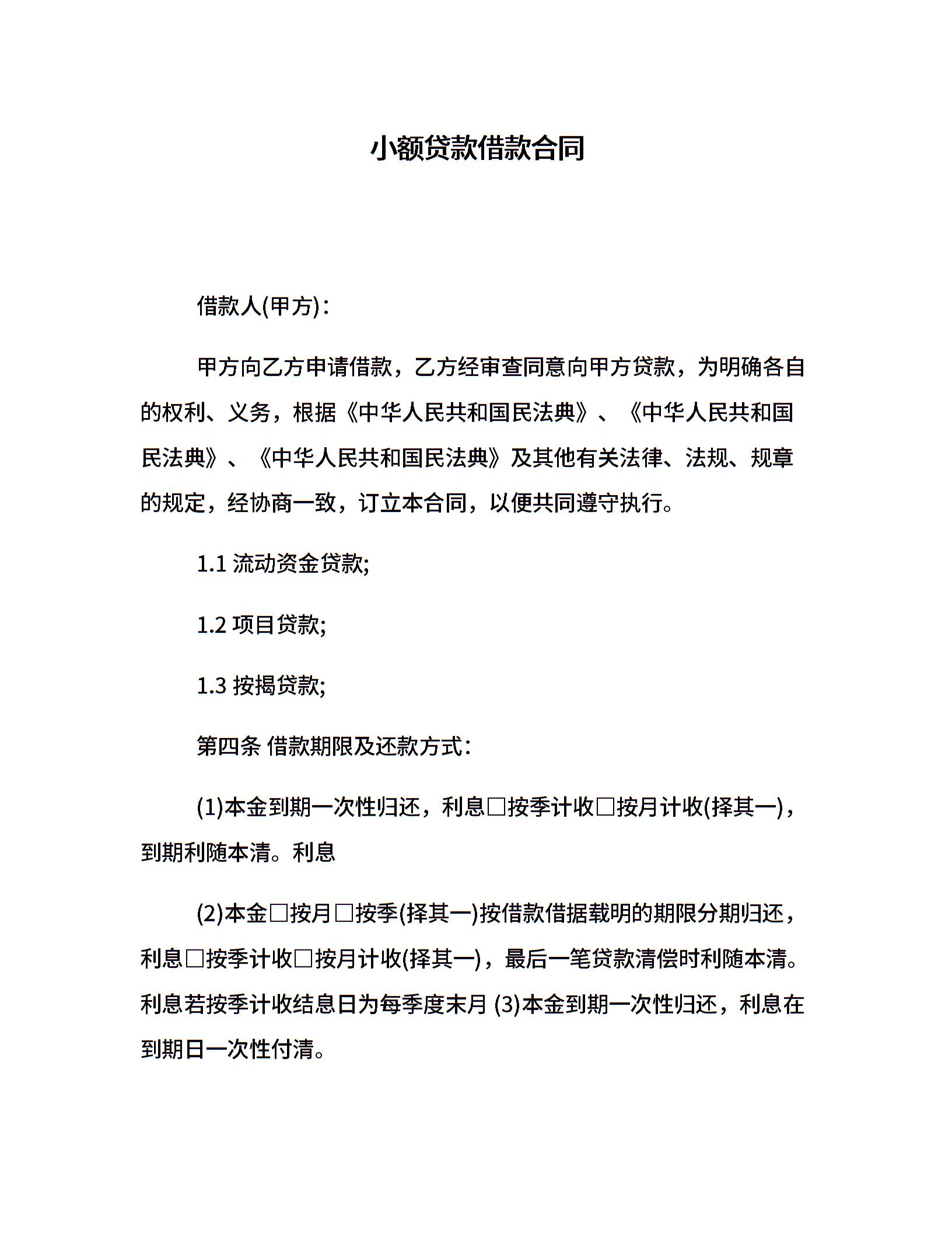 小额贷款借款合同