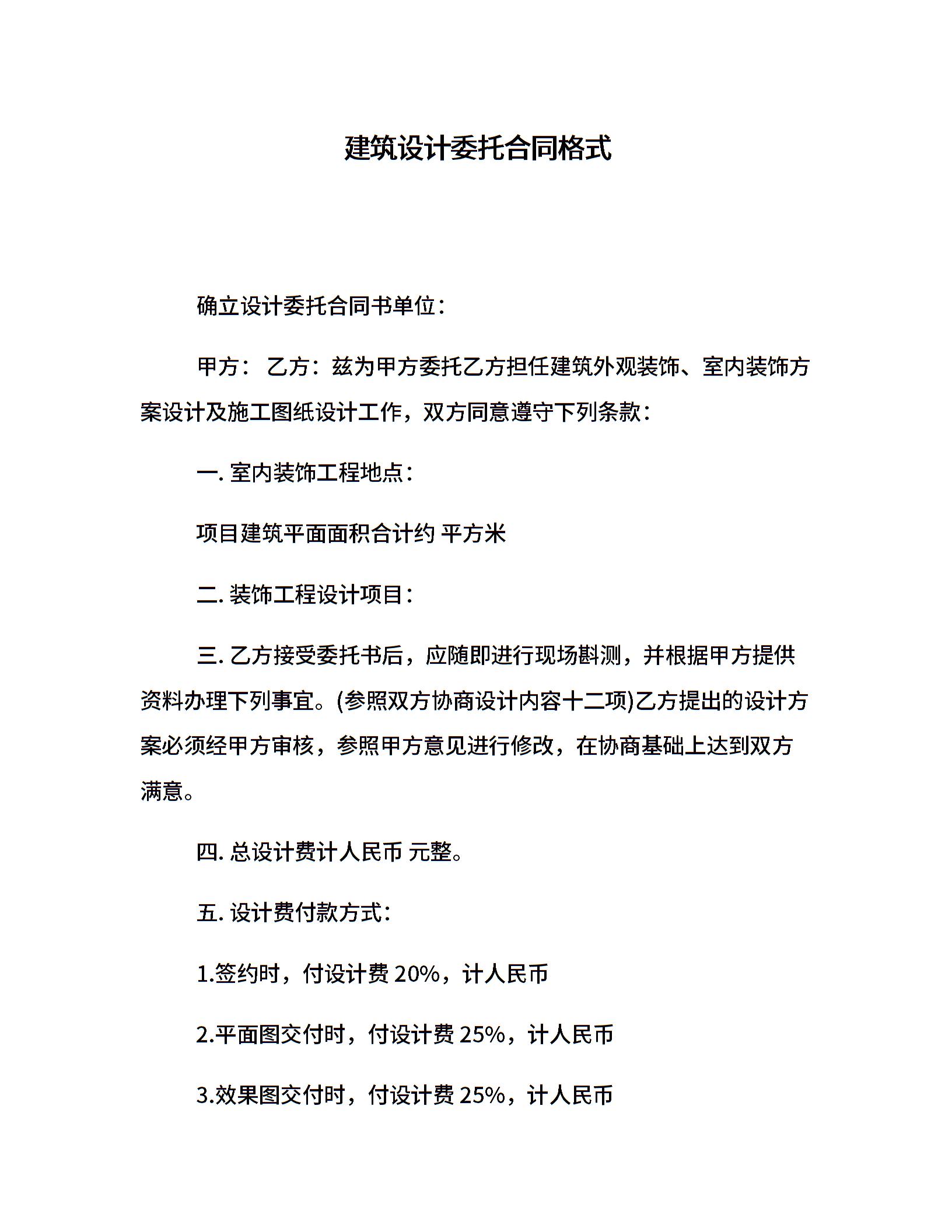 建筑设计委托合同格式
