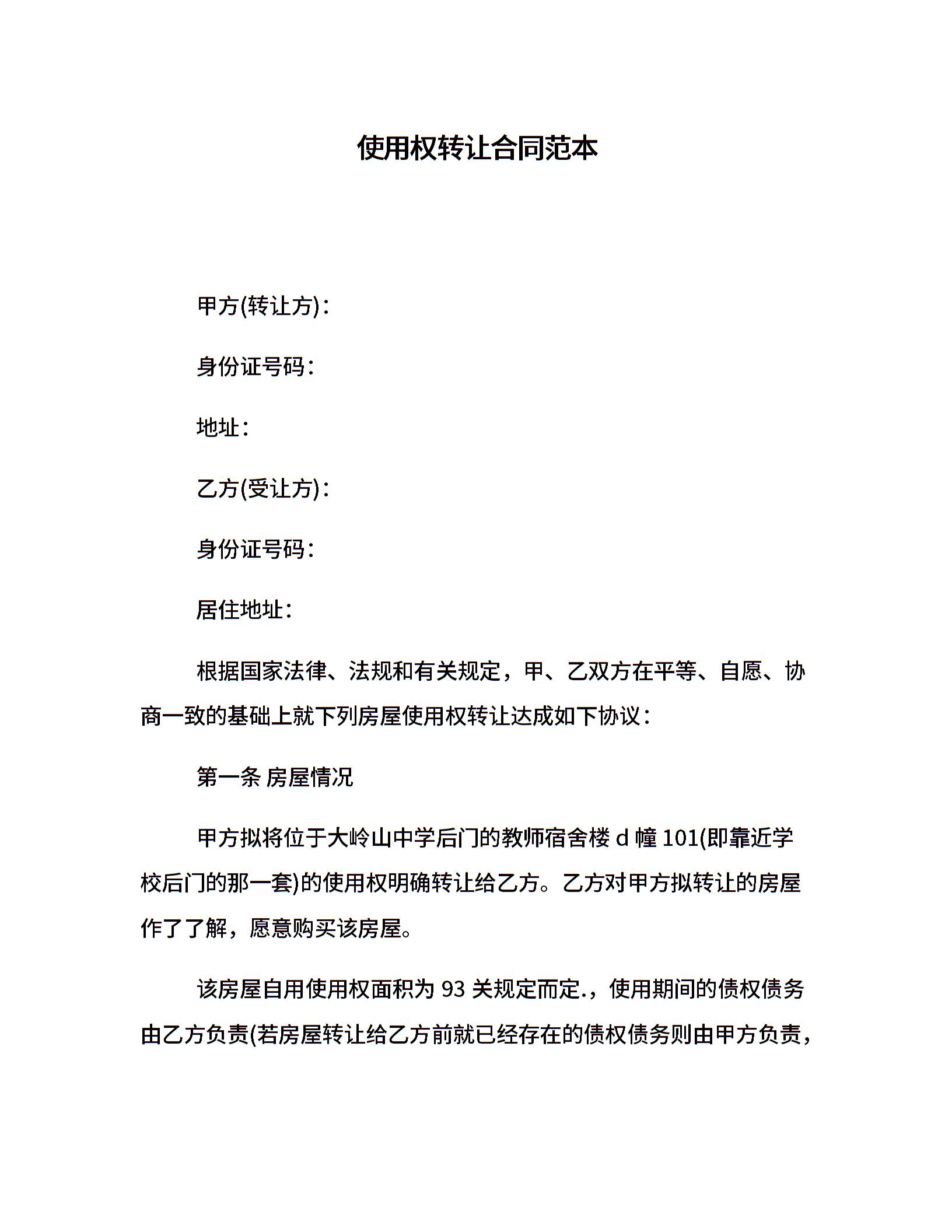 使用权转让合同范本