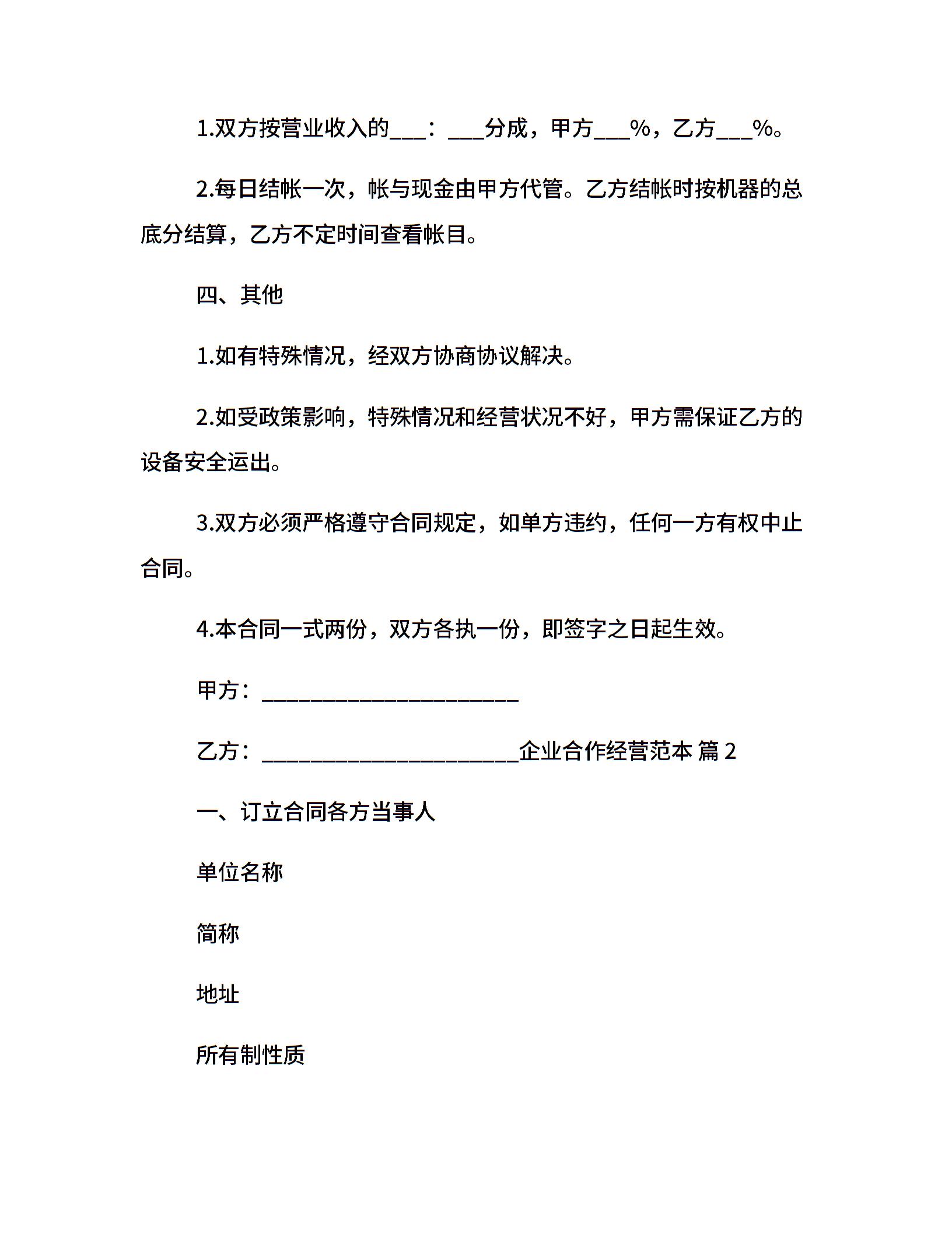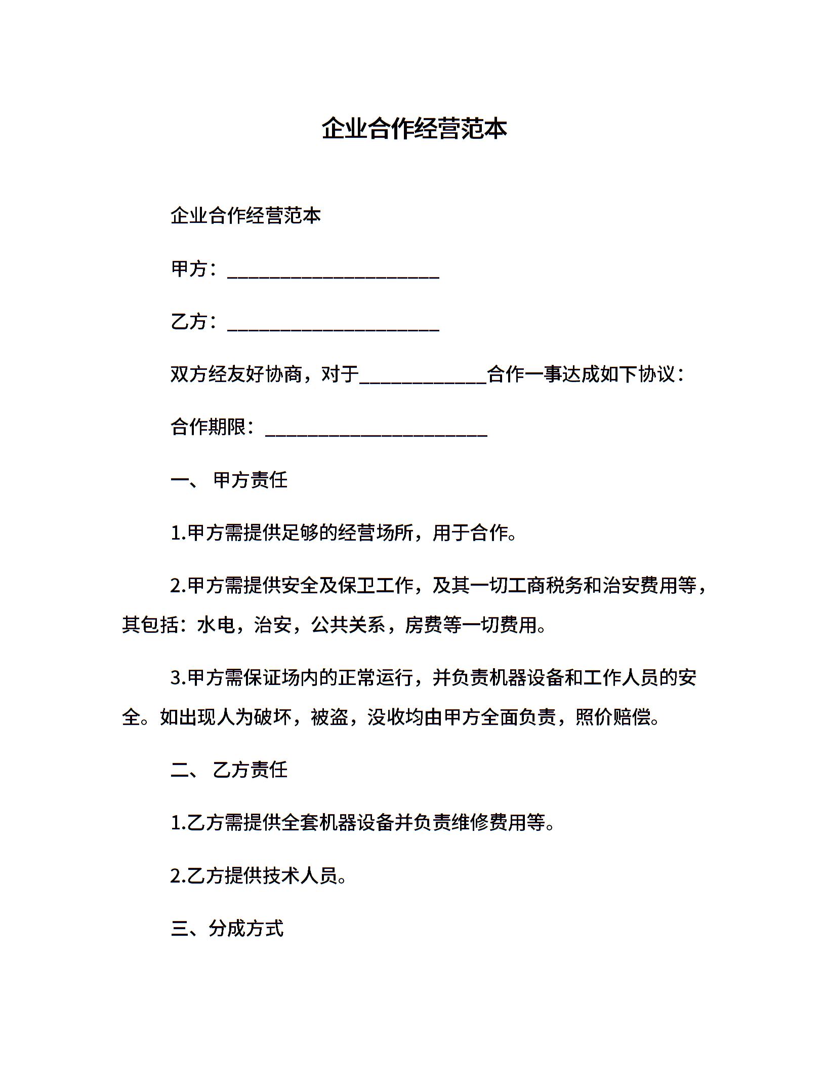 企业合作经营范本