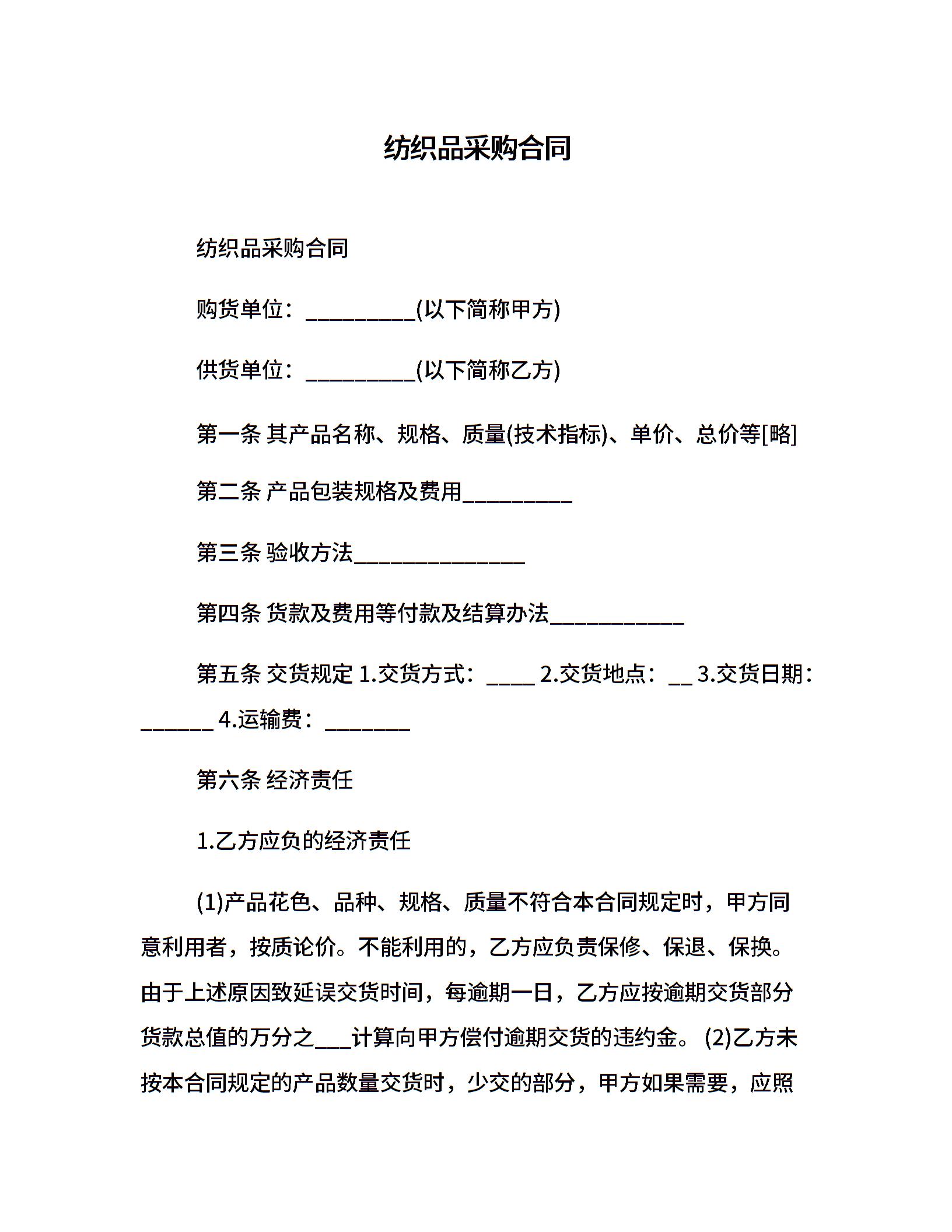 纺织品采购合同