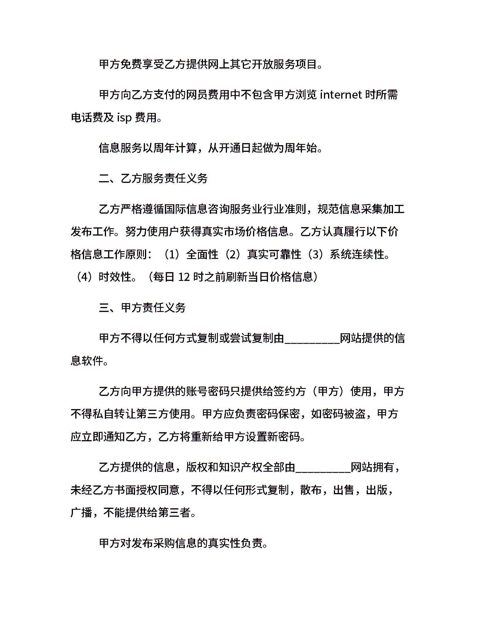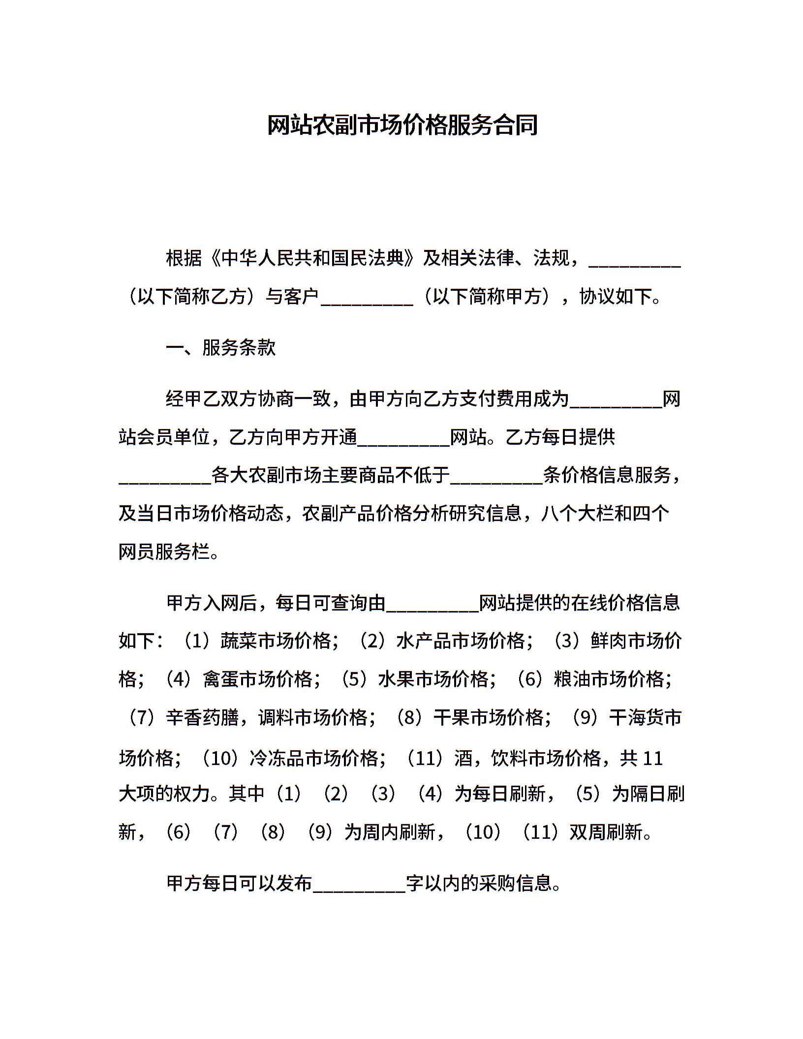 网站农副市场价格服务合同