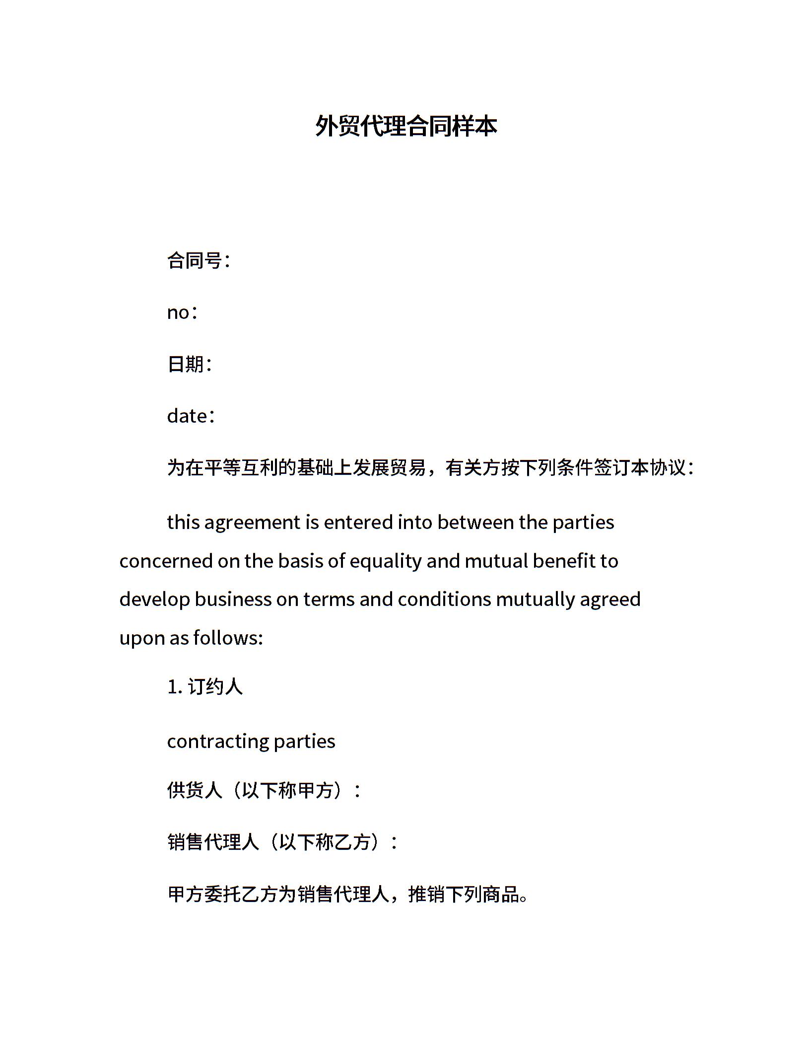 外贸代理合同样本