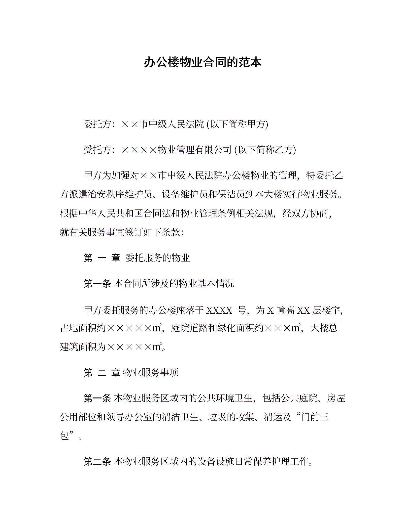 办公楼物业合同的范本