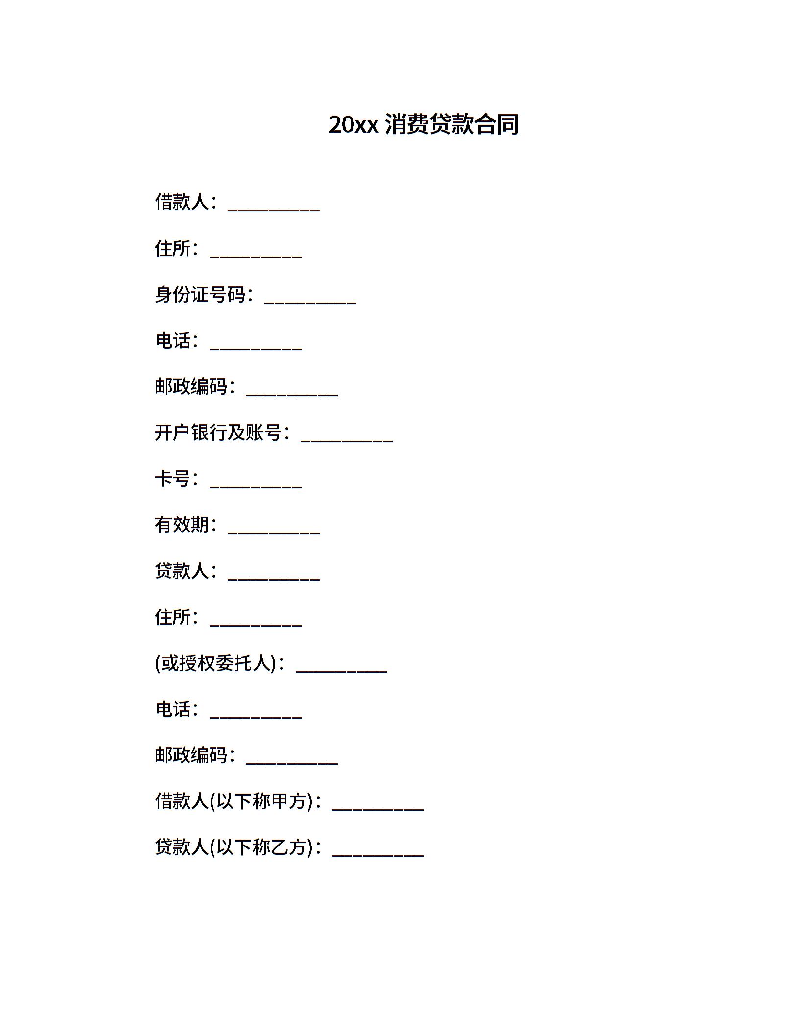 20xx消费贷款合同