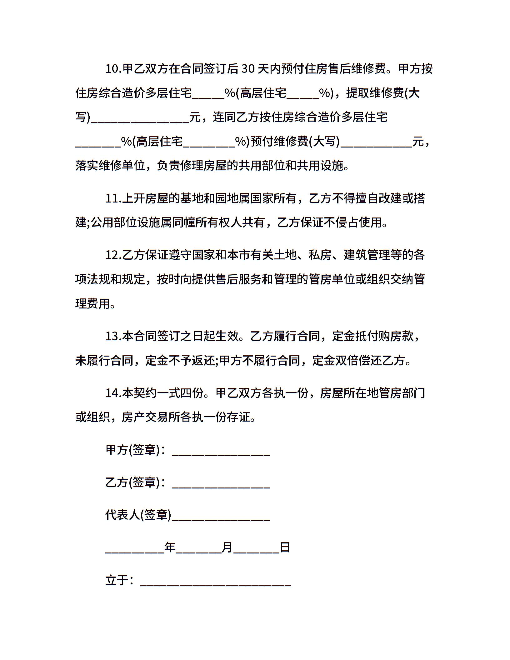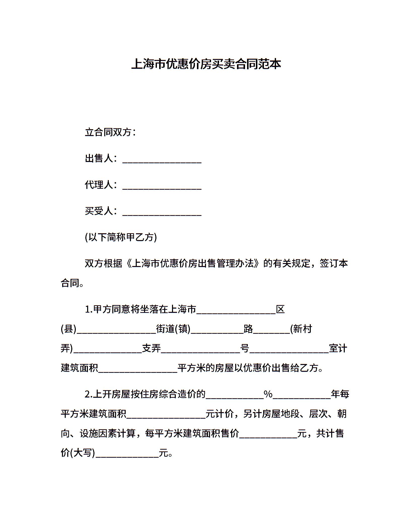上海市优惠价房买卖合同范本