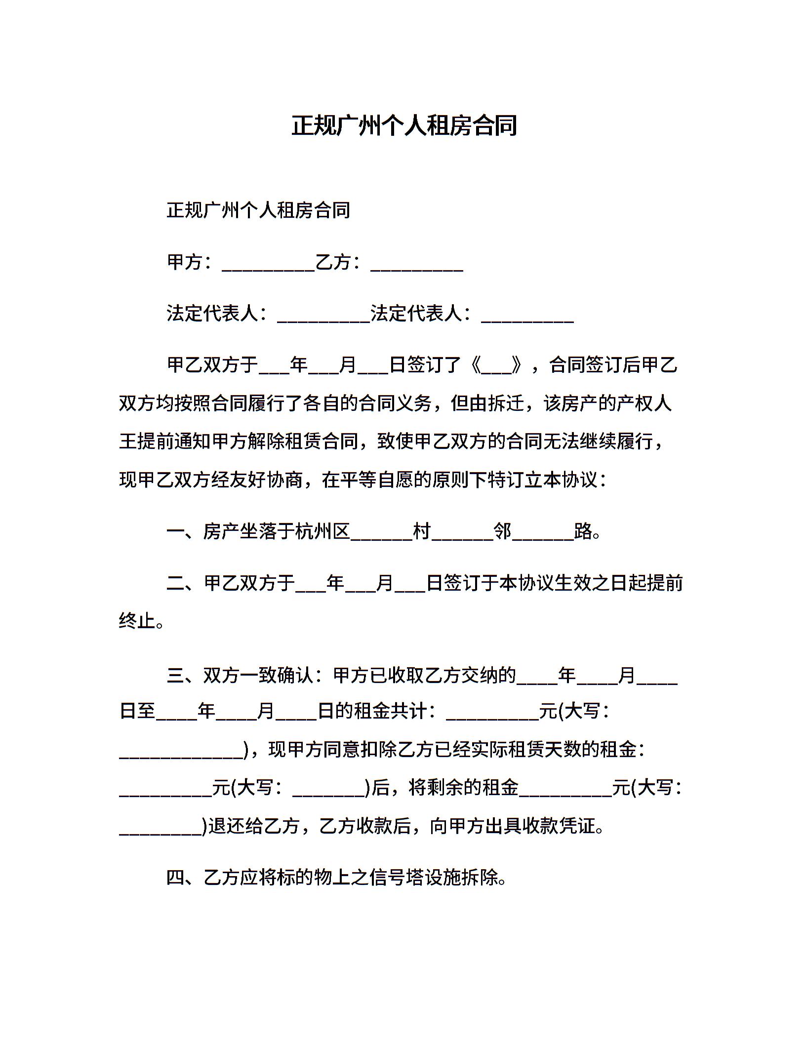 正规广州个人租房合同