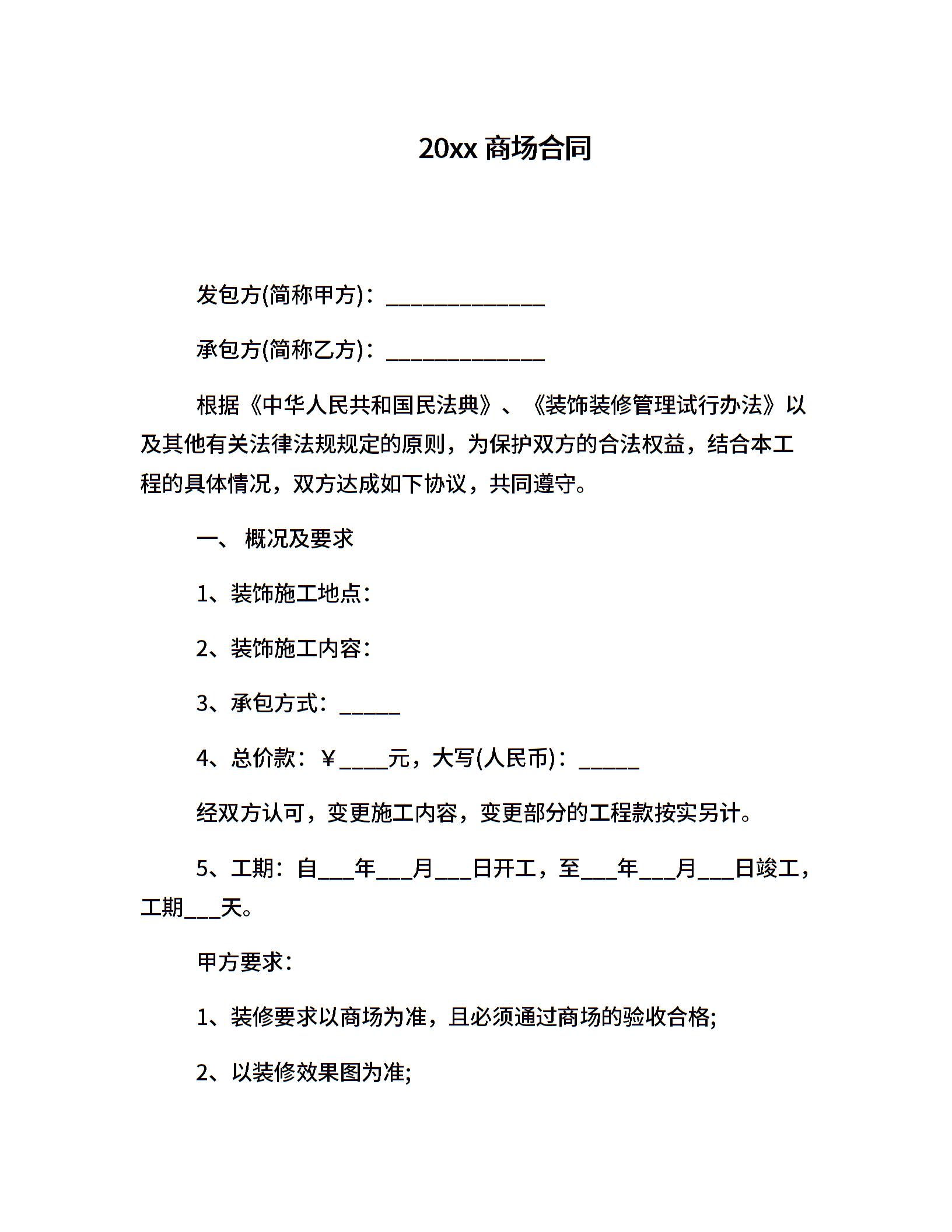 20xx商场合同