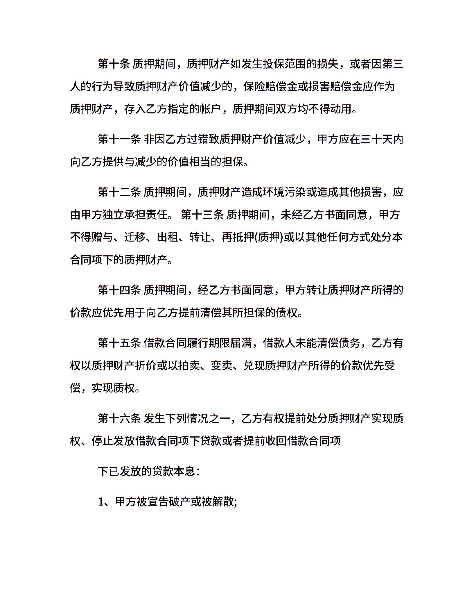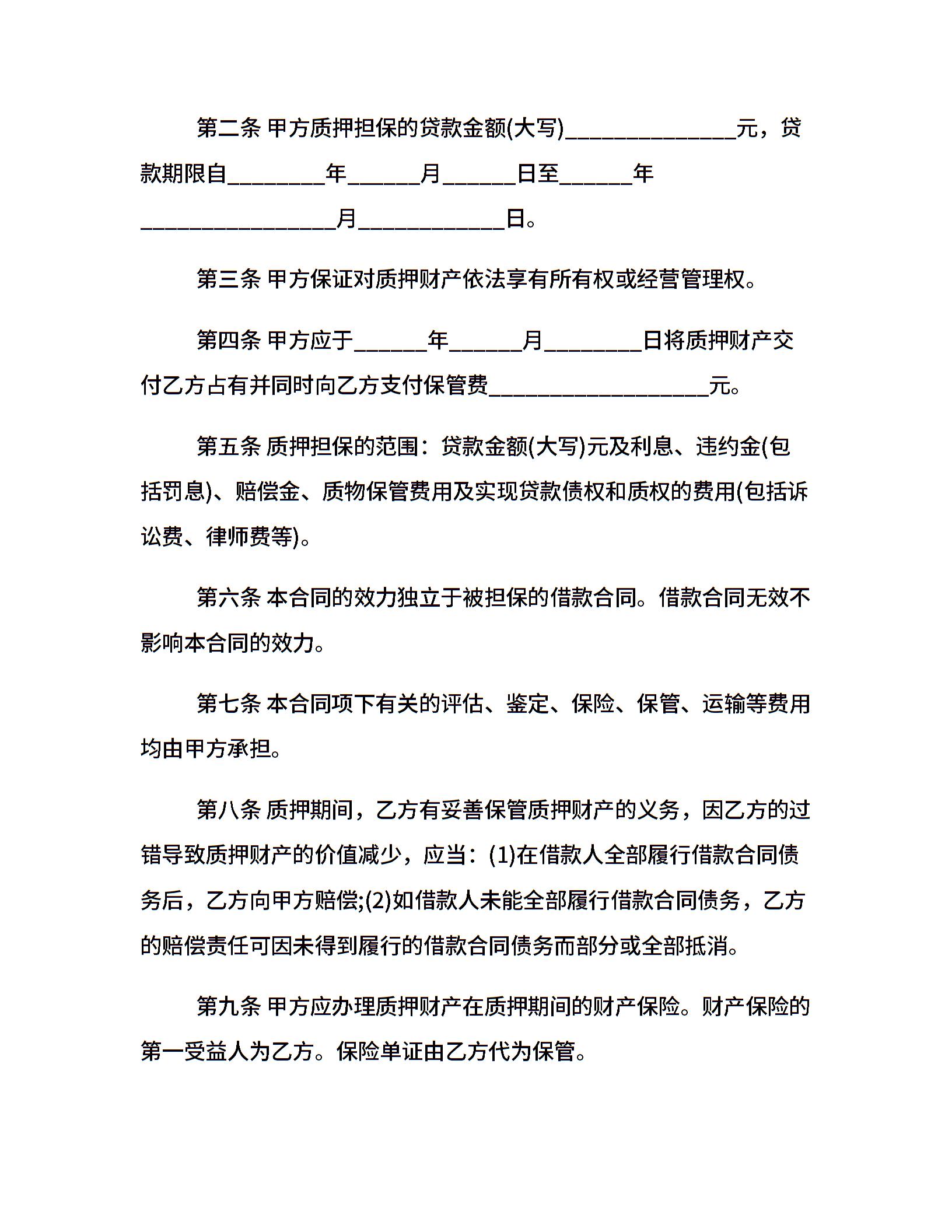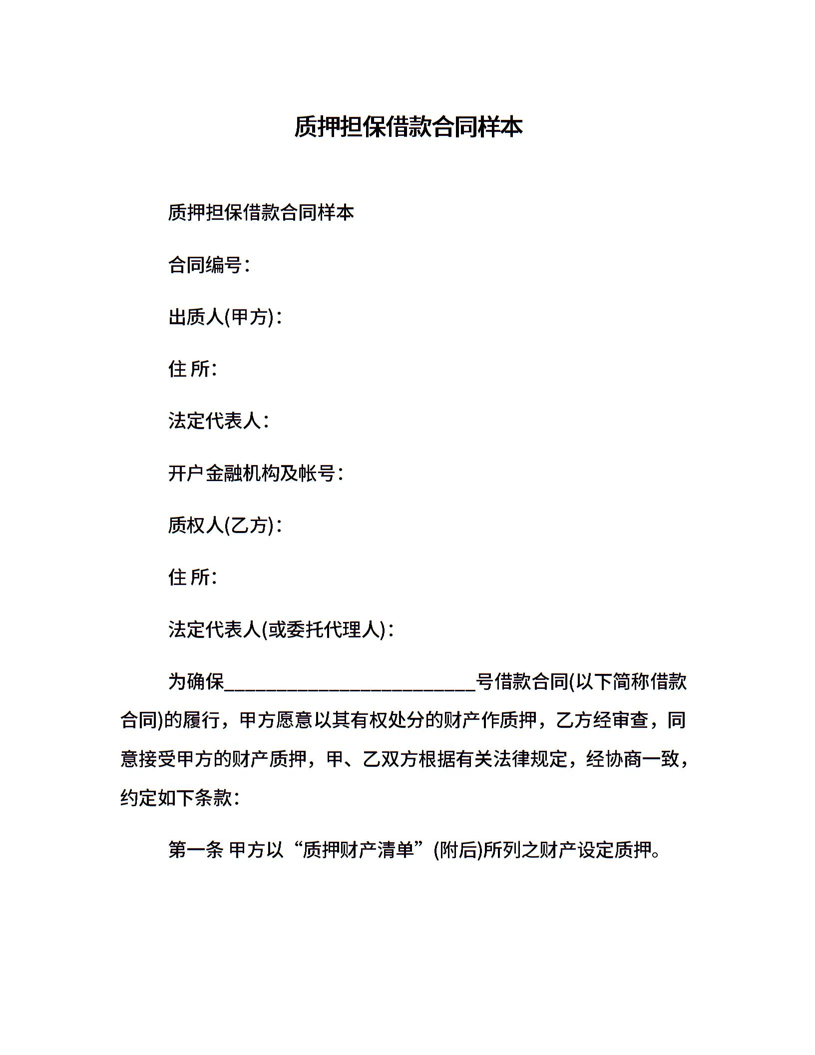 质押担保借款合同样本