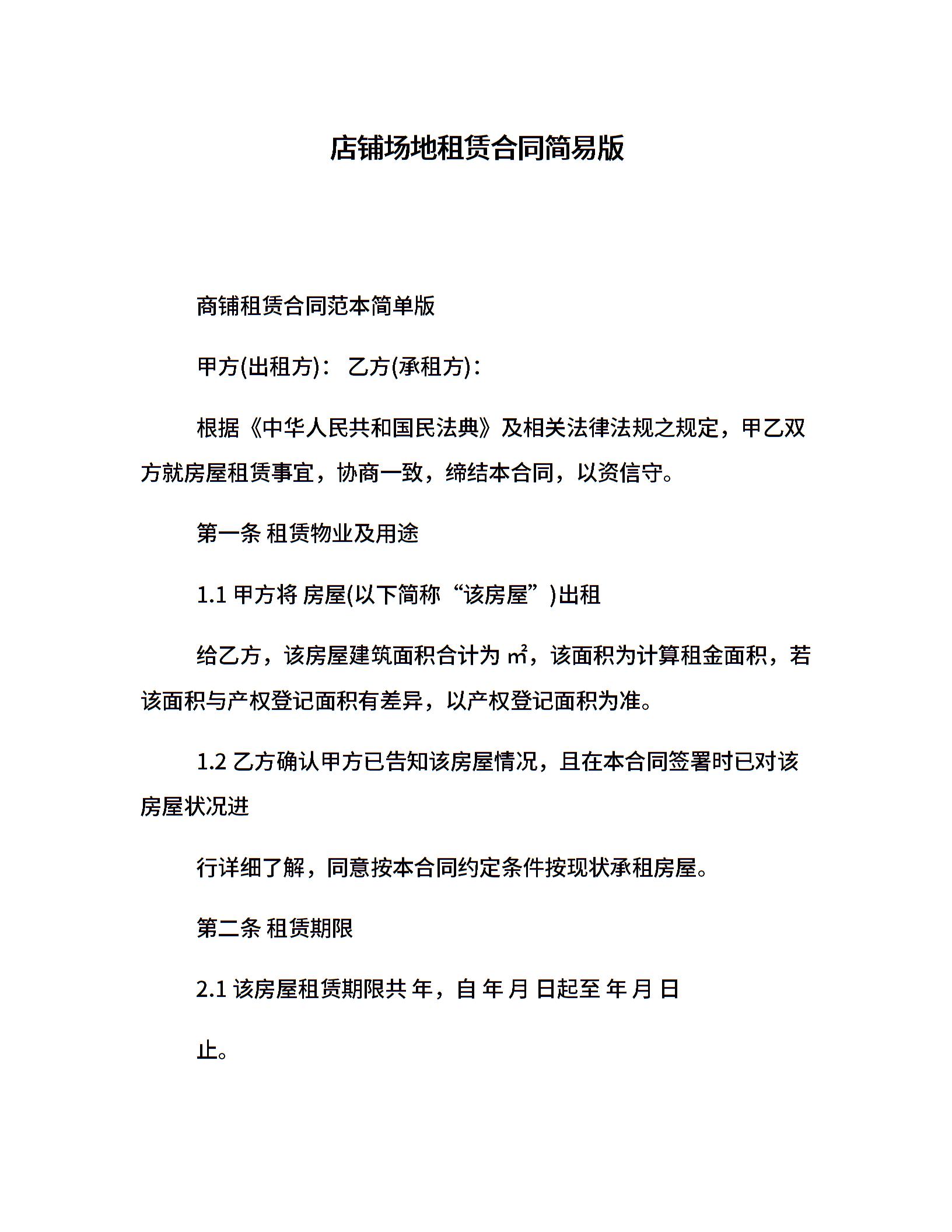 店铺场地租赁合同简易版