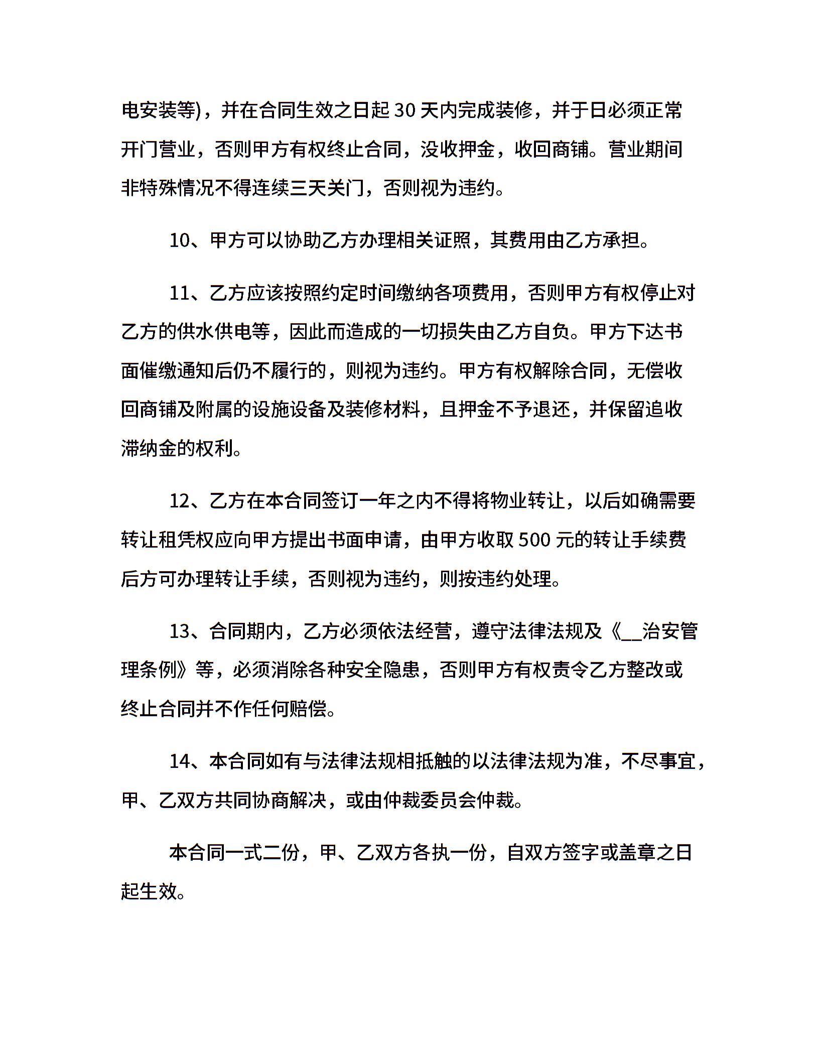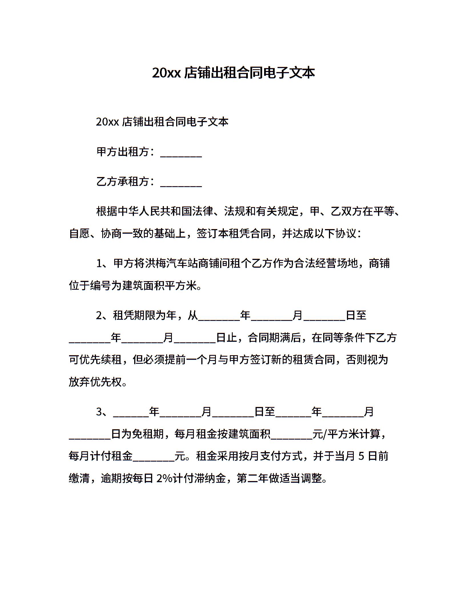 20xx店铺出租合同电子文本