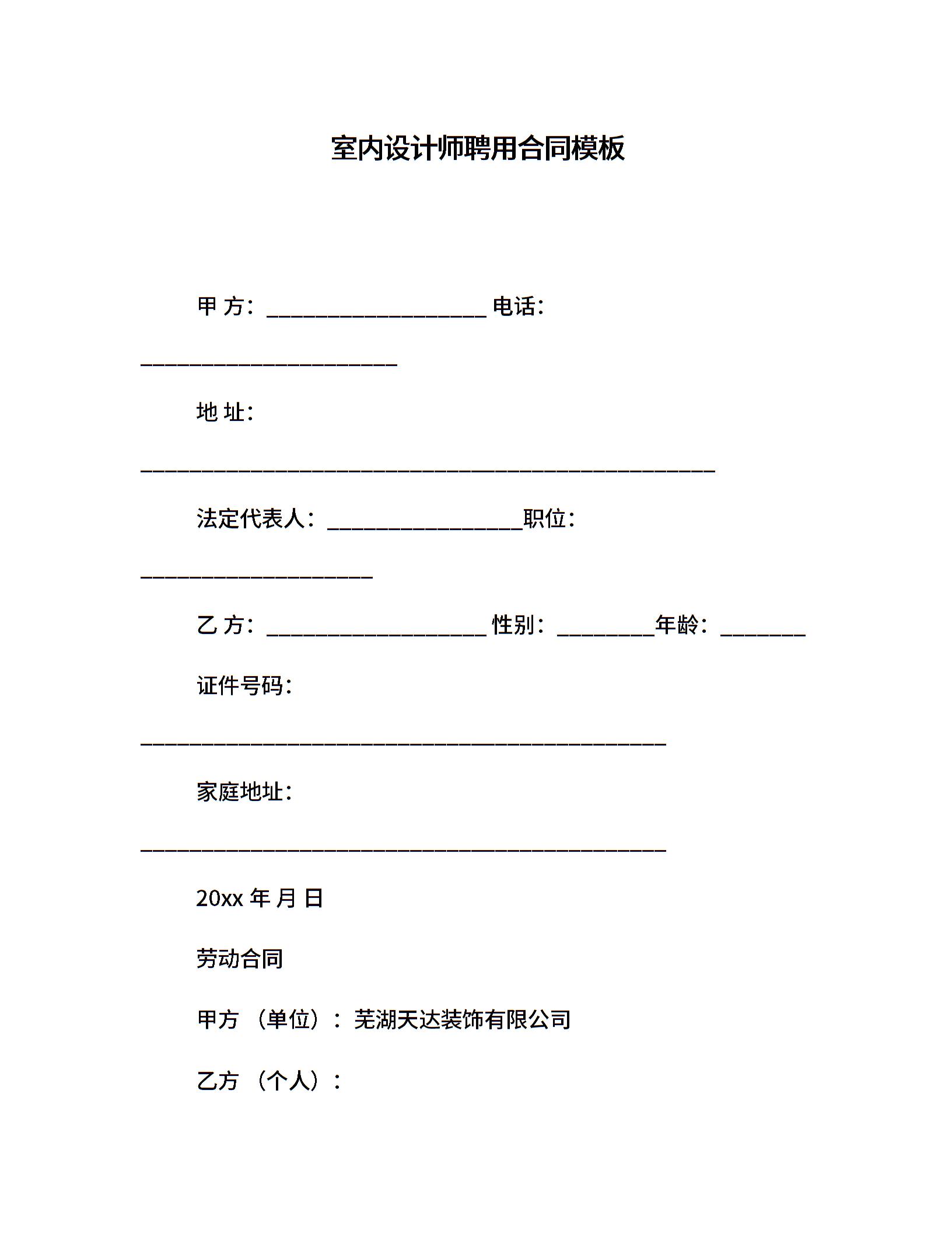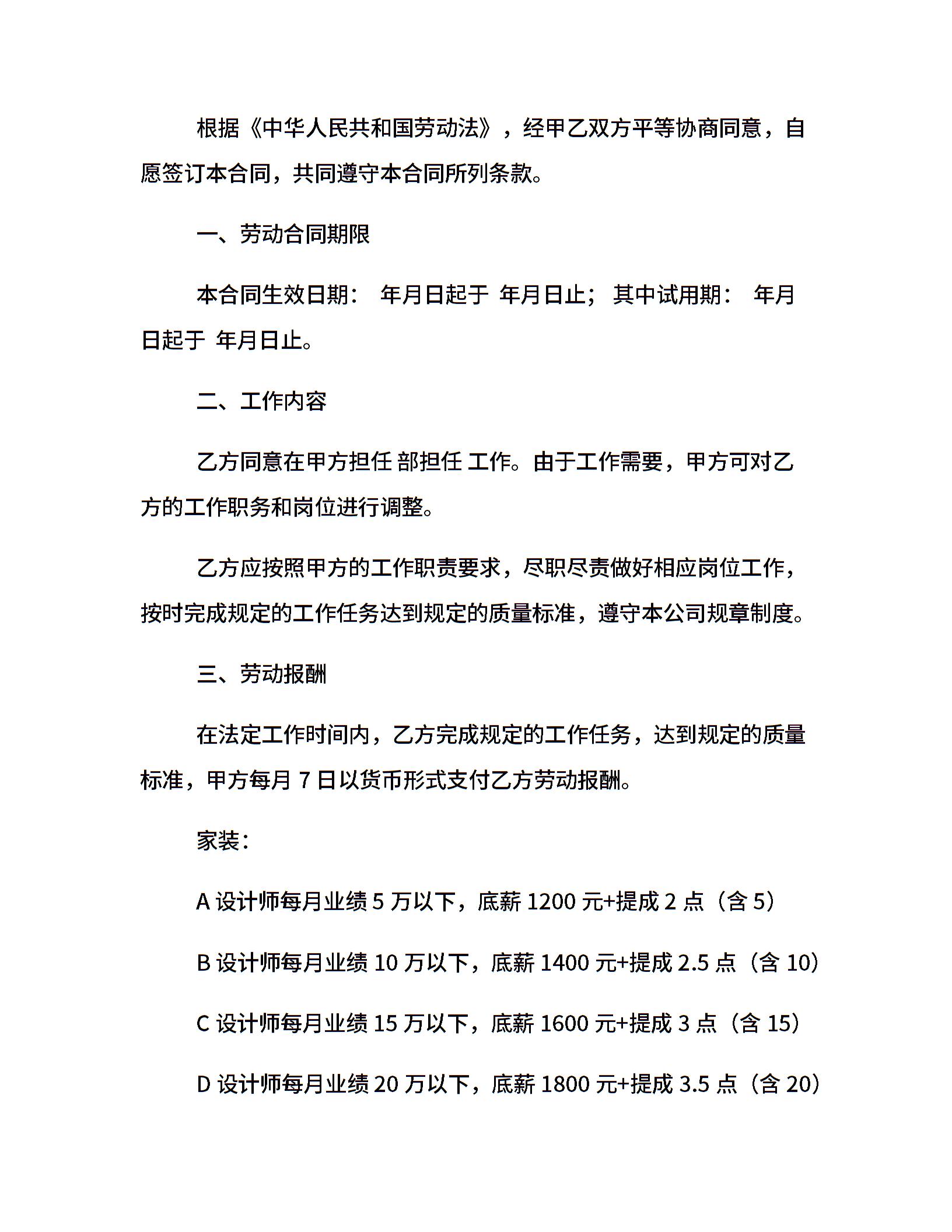 室内设计师聘用合同模板