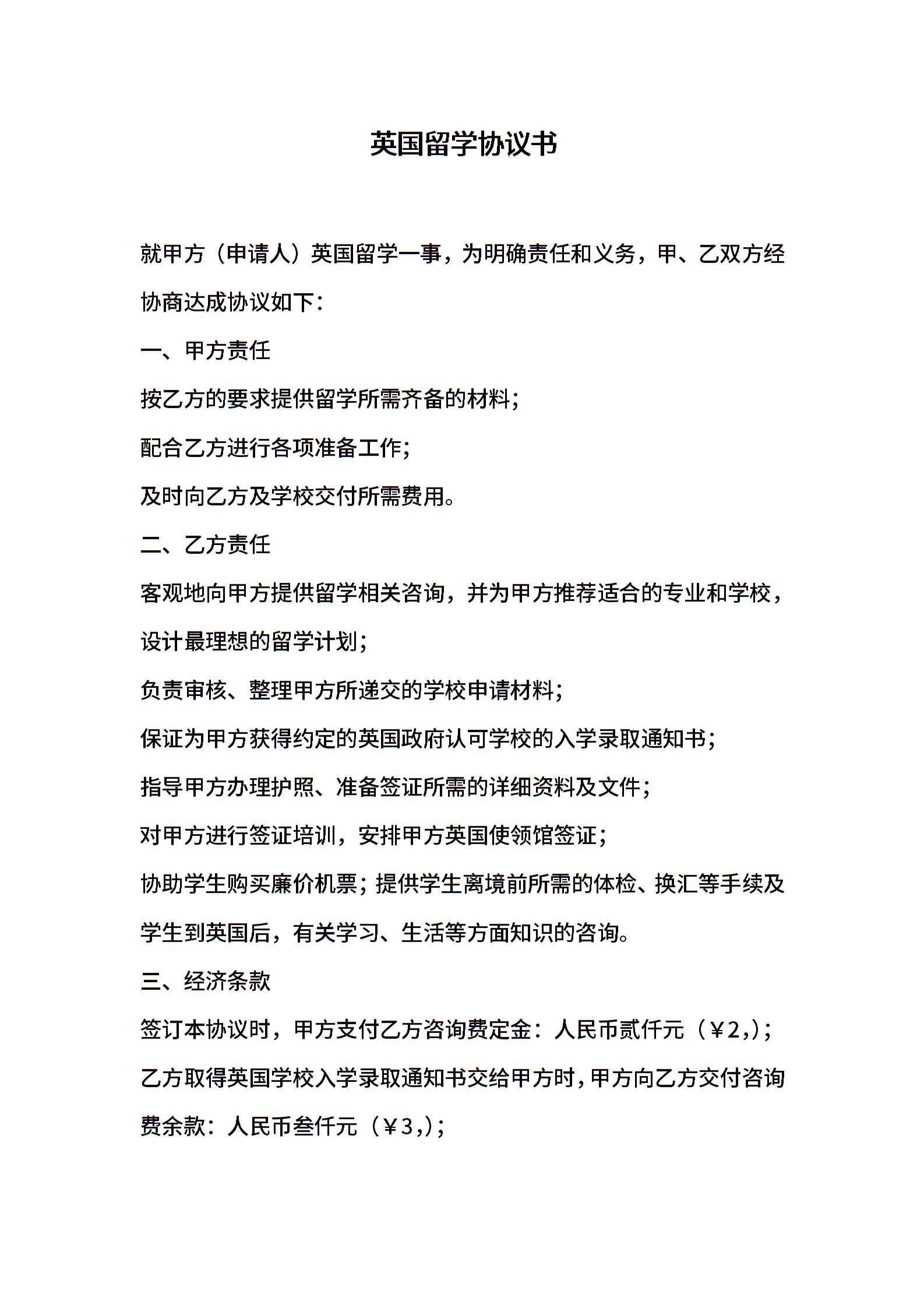 英国留学协议书