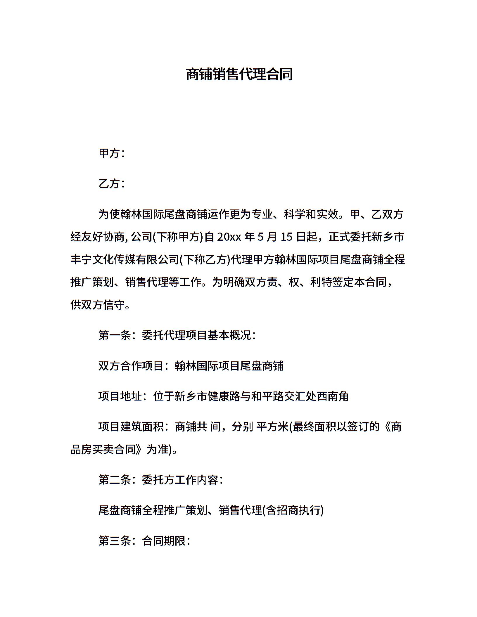 商铺销售代理合同