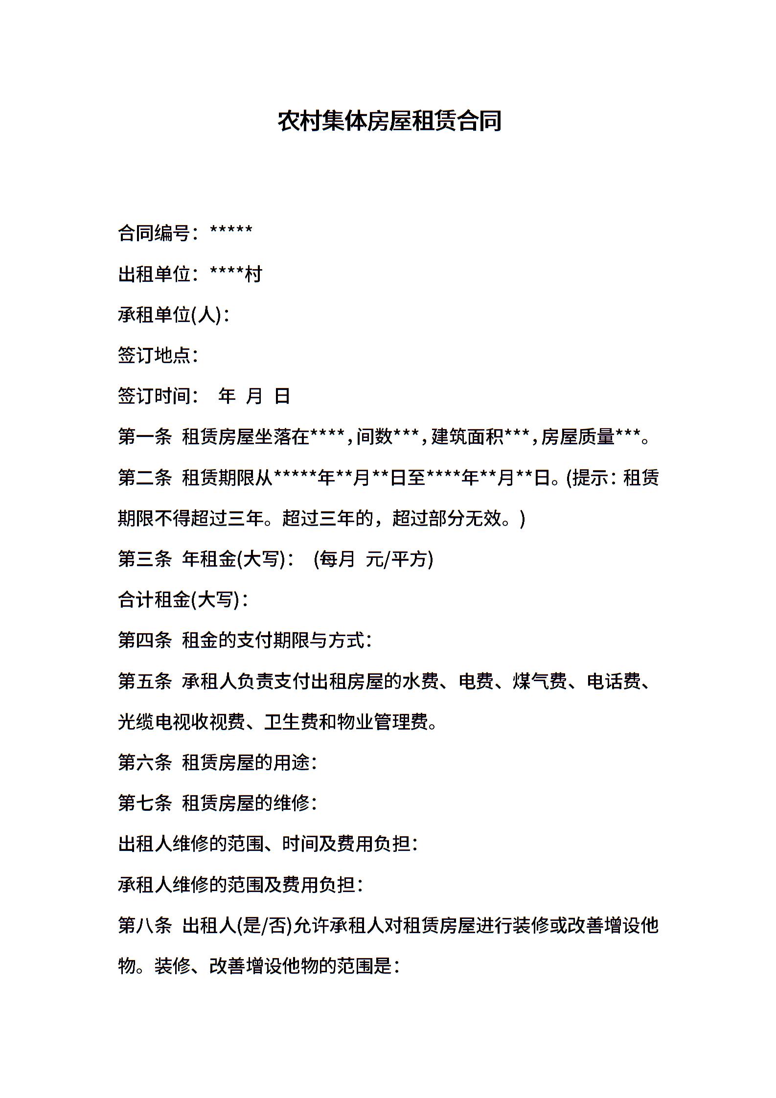 农村集体房屋租赁合同