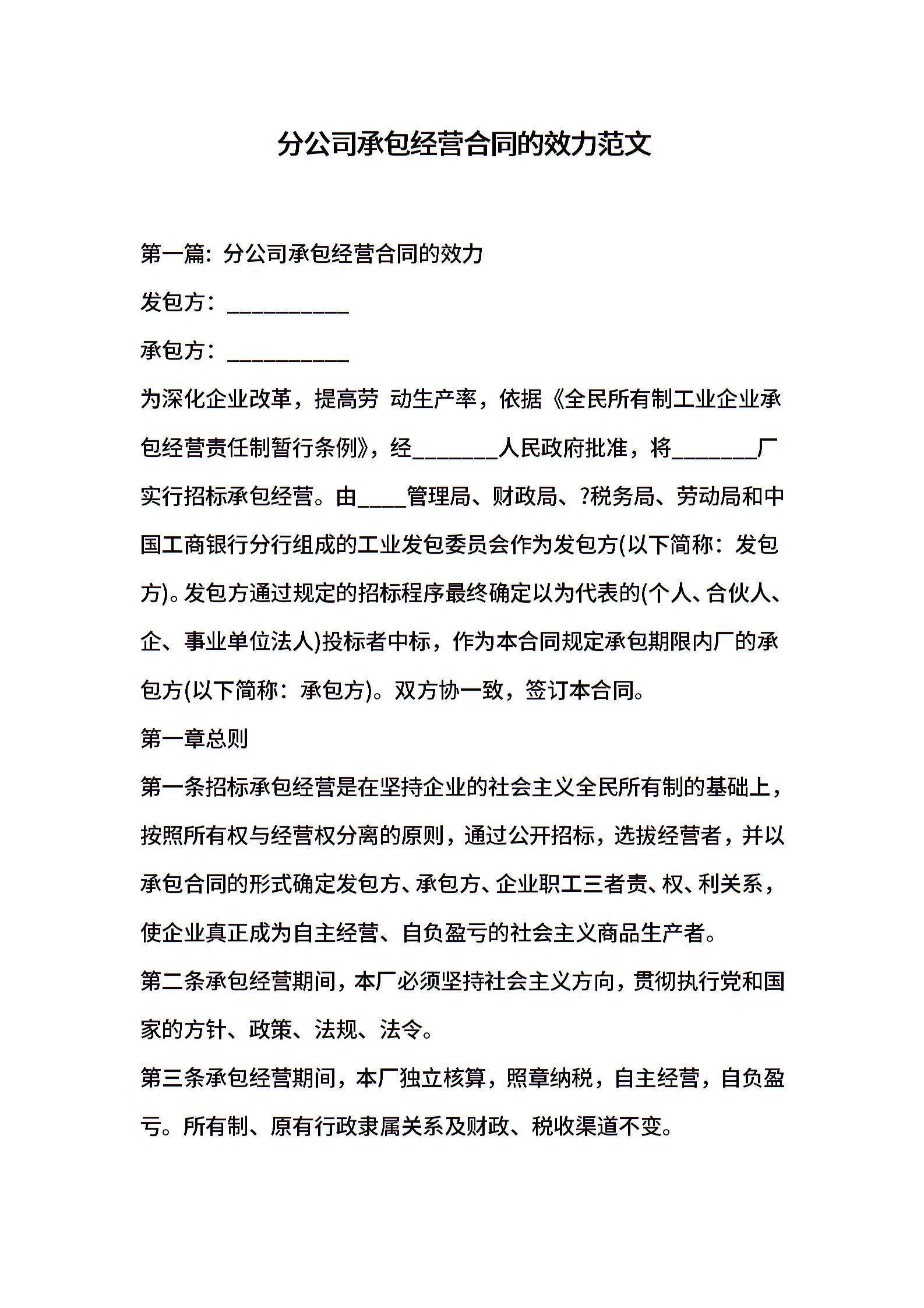 分公司承包经营合同的效力范文