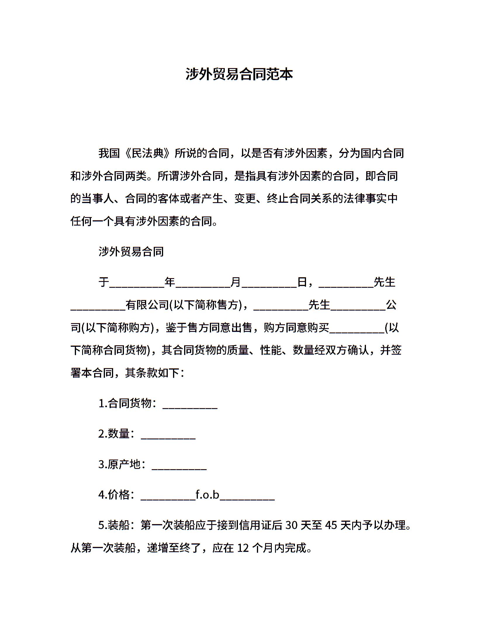 涉外贸易合同范本