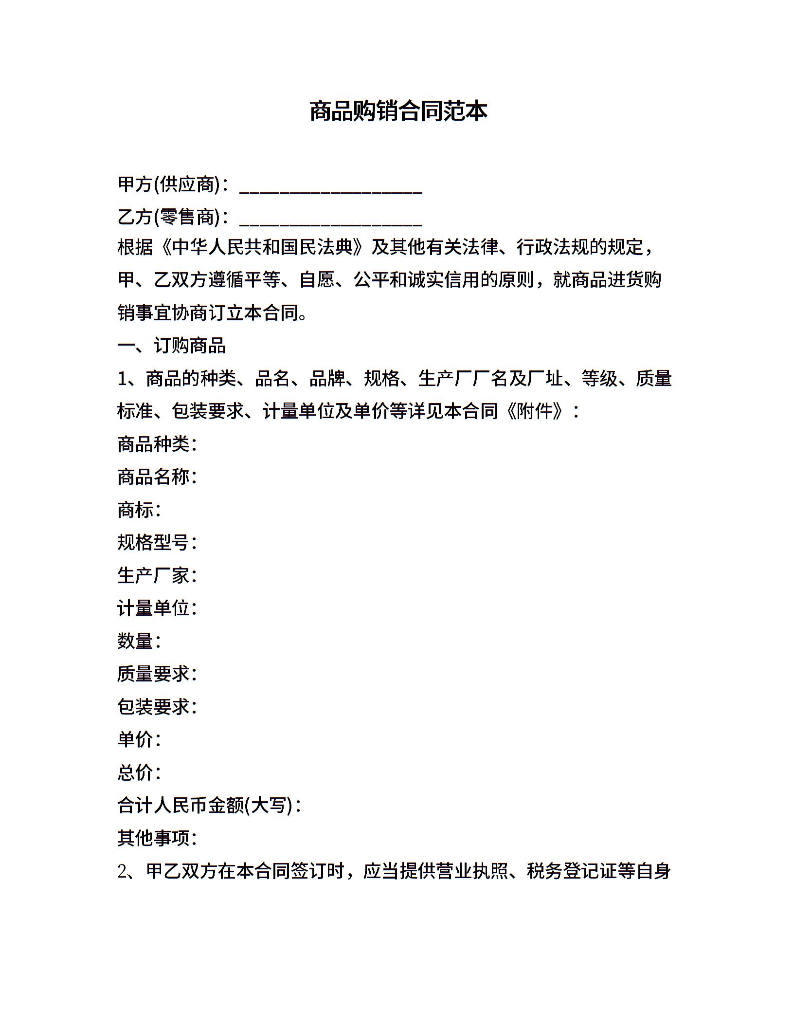 商品购销合同范本 (3)