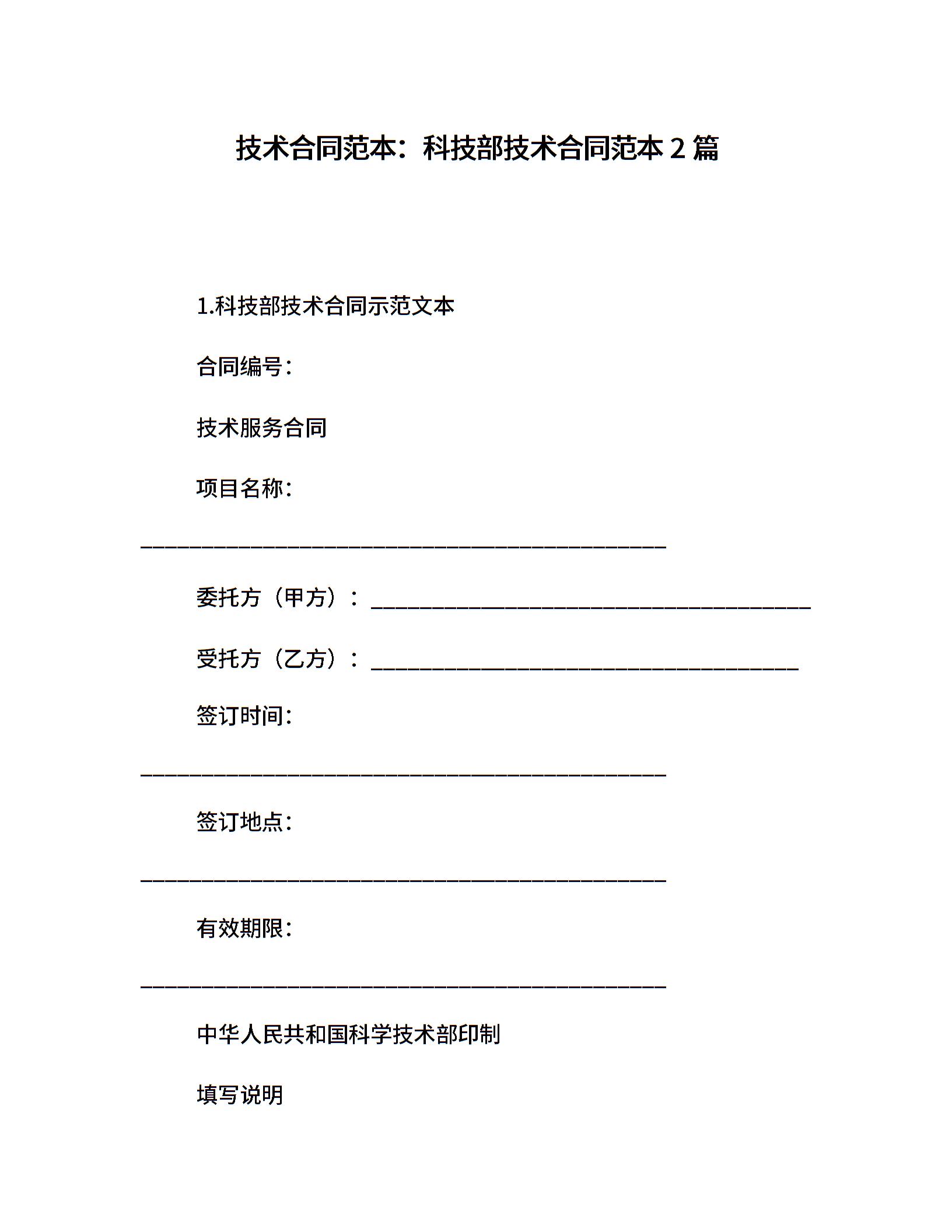 技术合同范本:科技部技术合同范本2篇