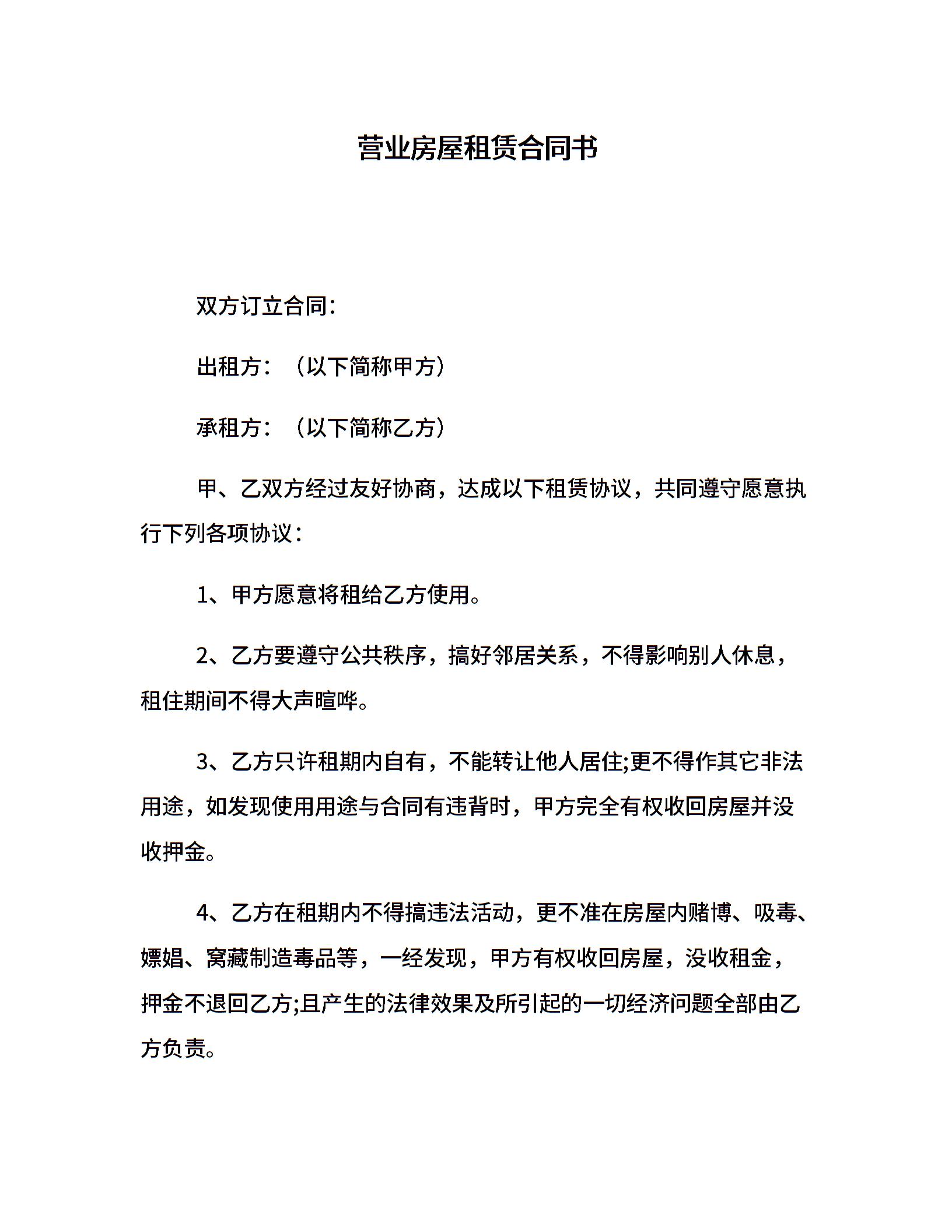 营业房屋租赁合同书