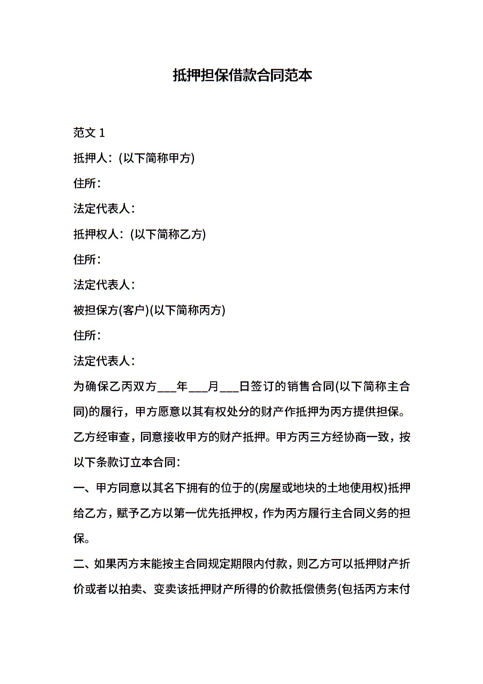 抵押担保借款合同范本
