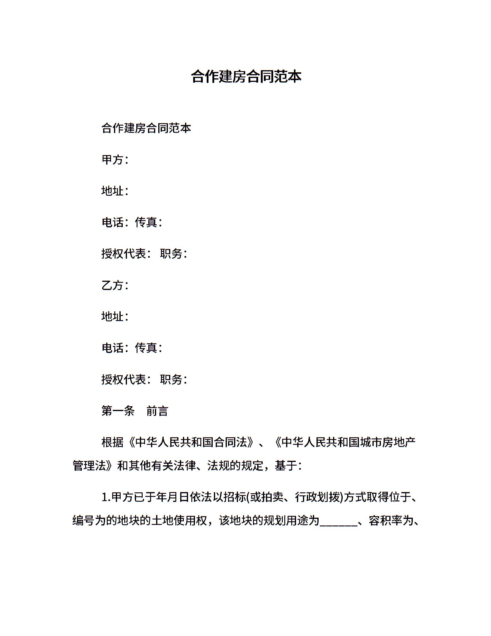 合作建房合同范本