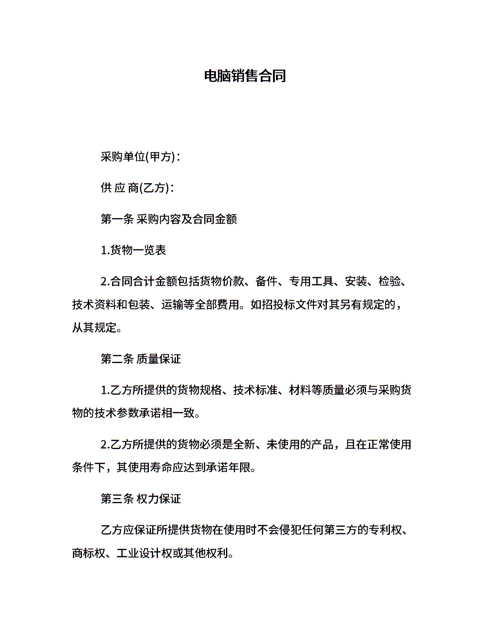 电脑销售合同