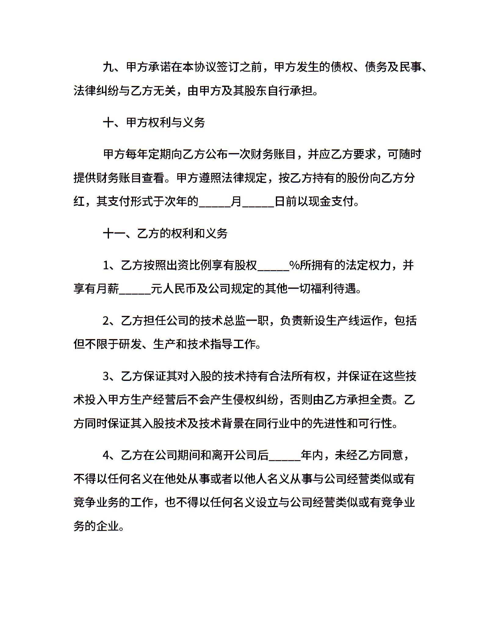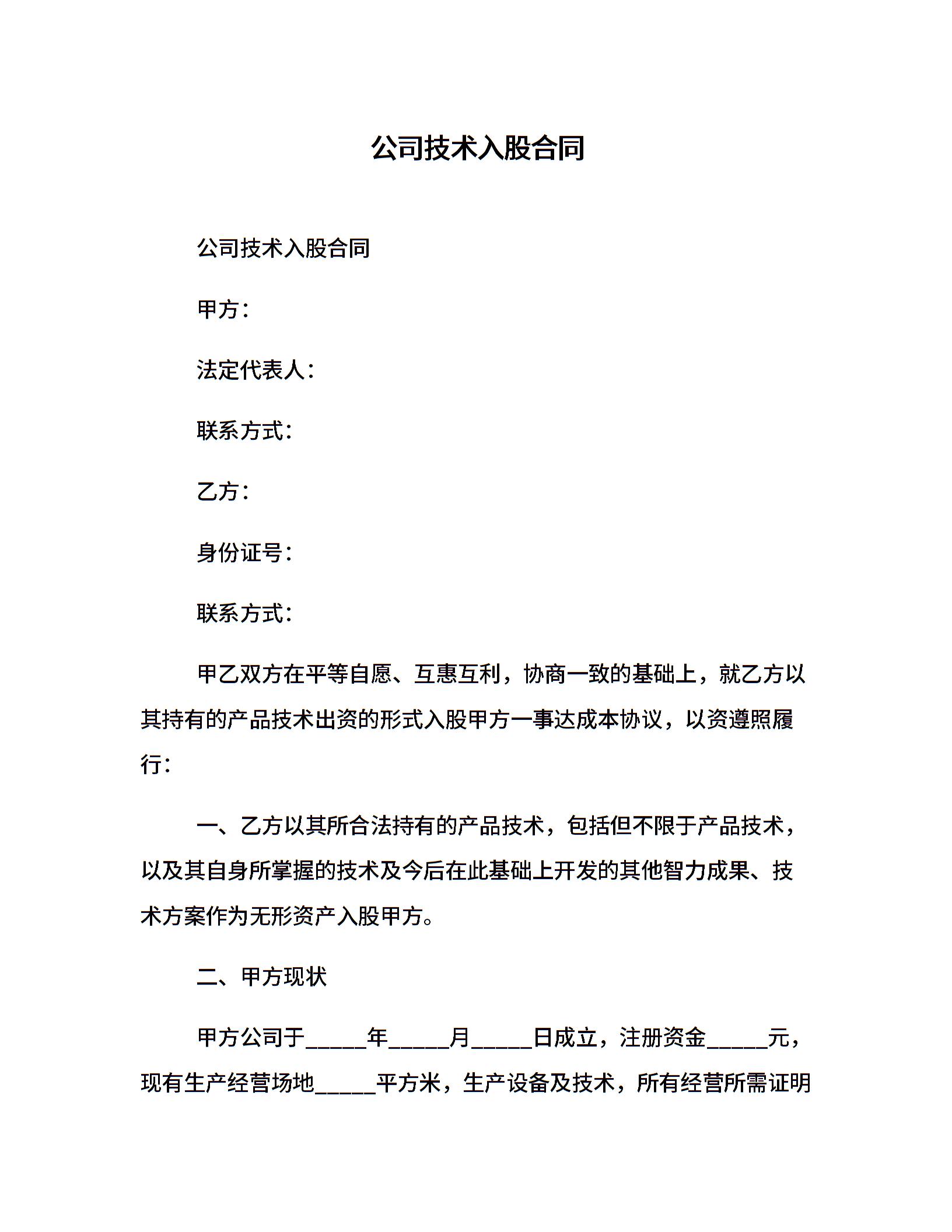 公司技术入股合同
