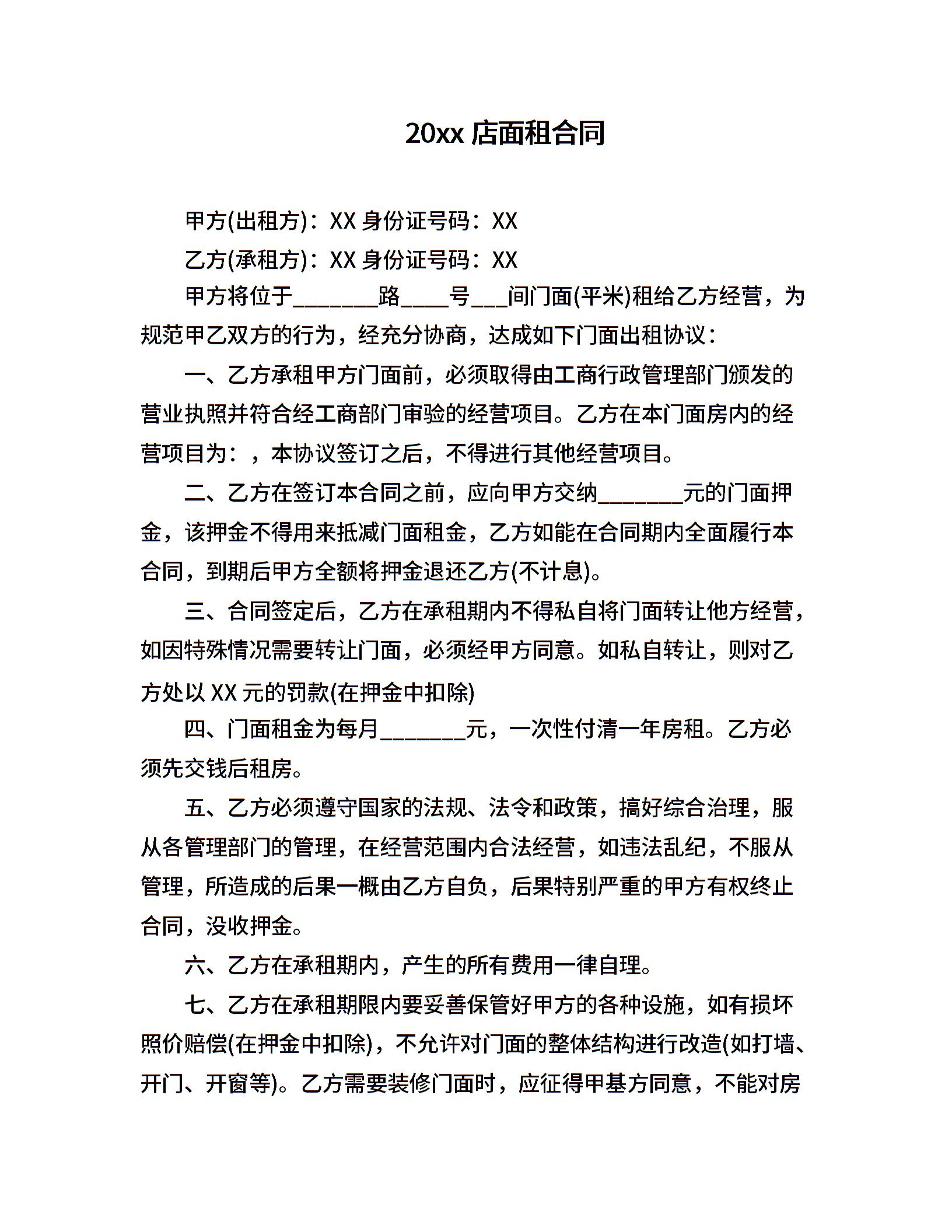 20xx店面租合同