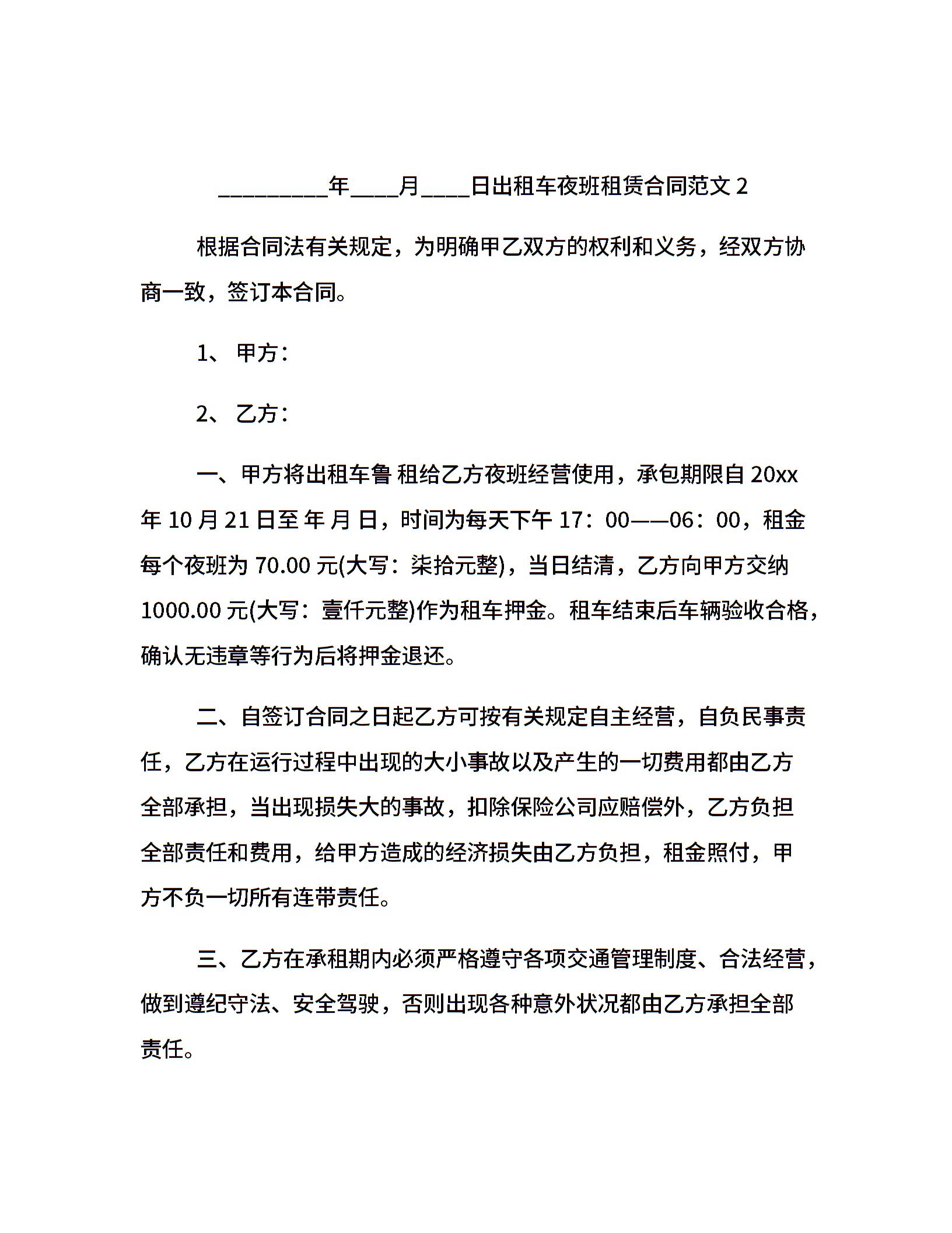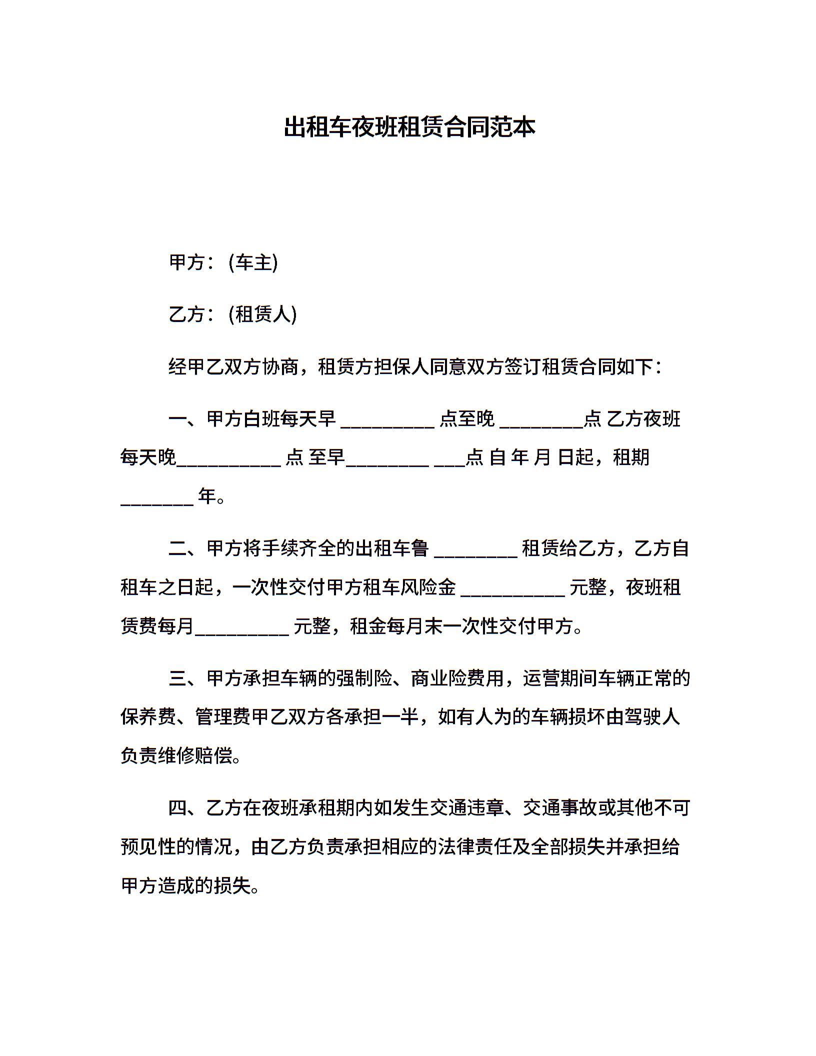 出租车夜班租赁合同范本