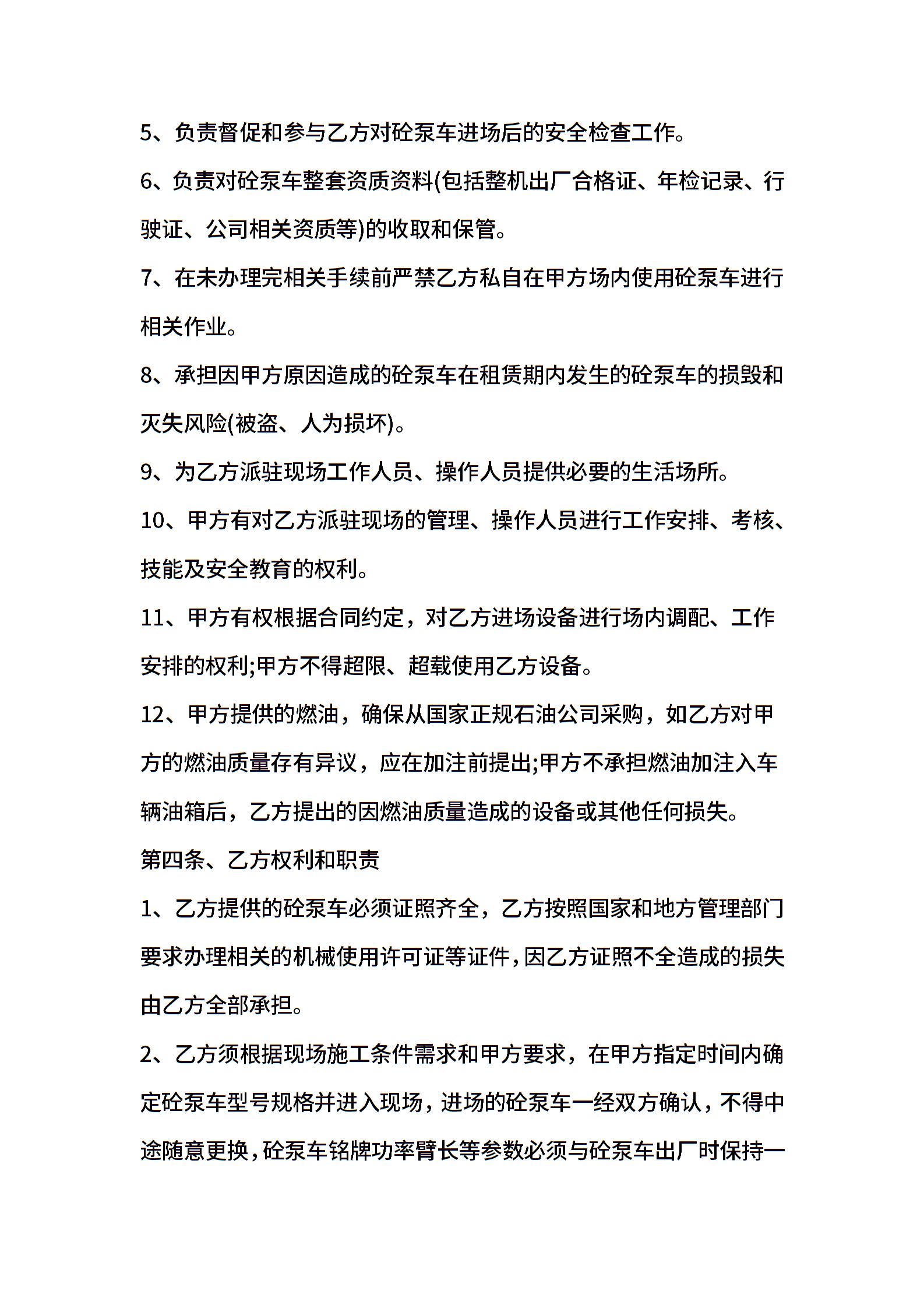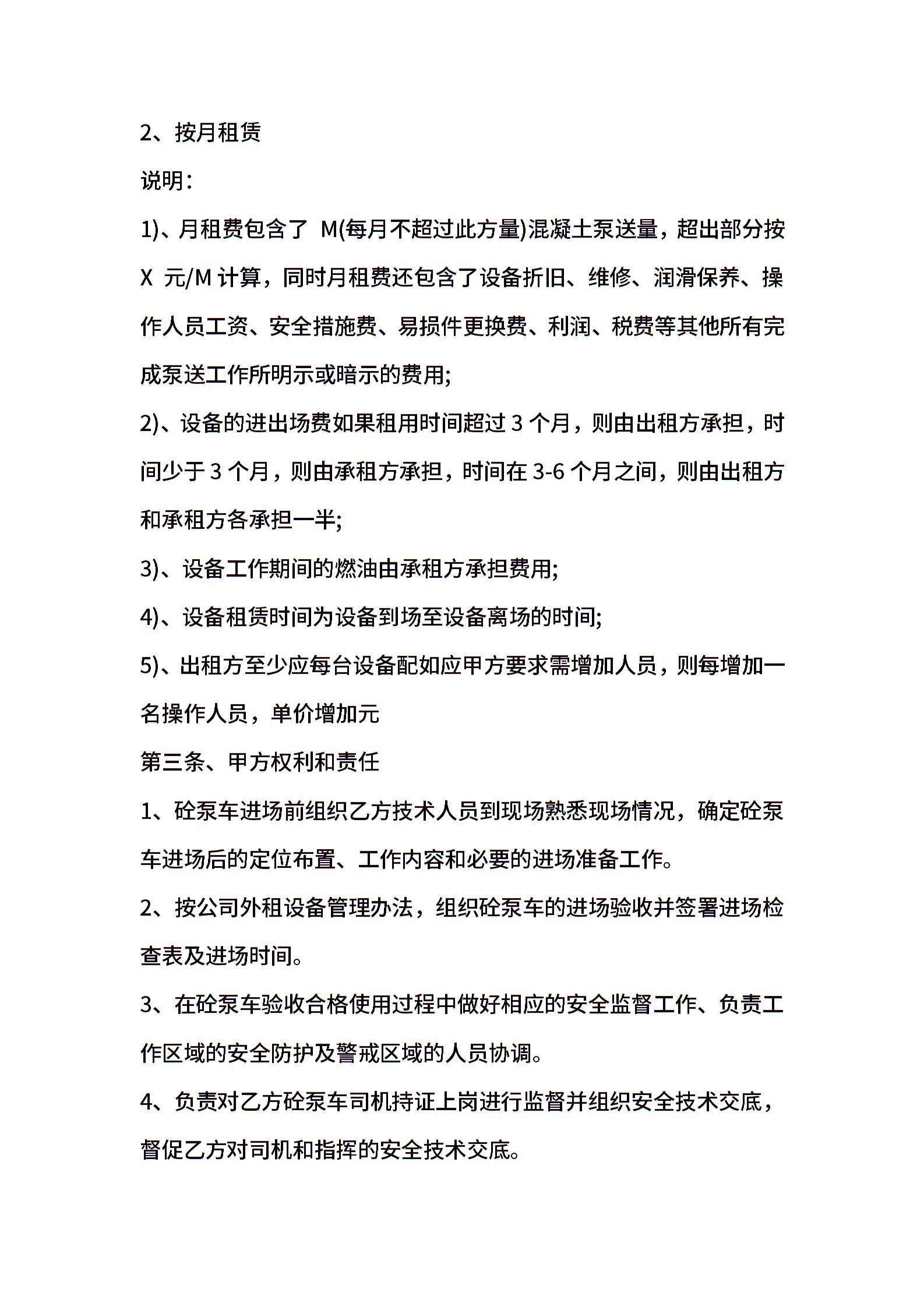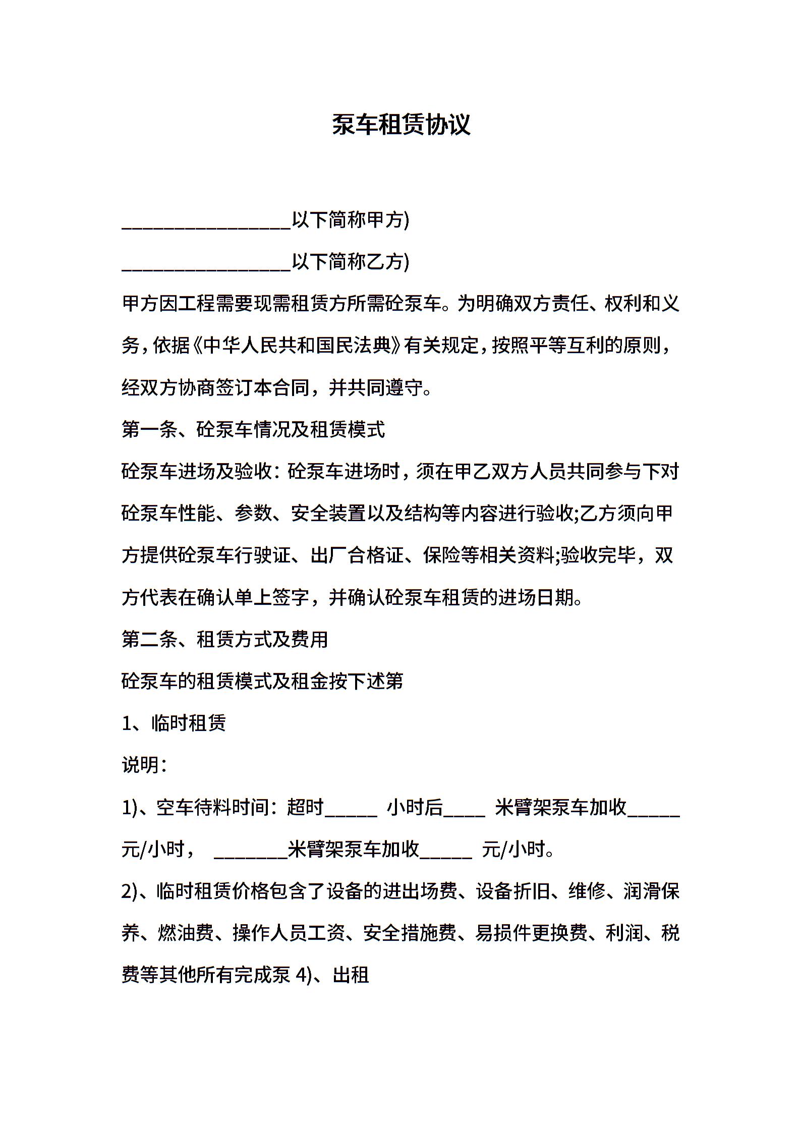 泵车租赁协议最新模板