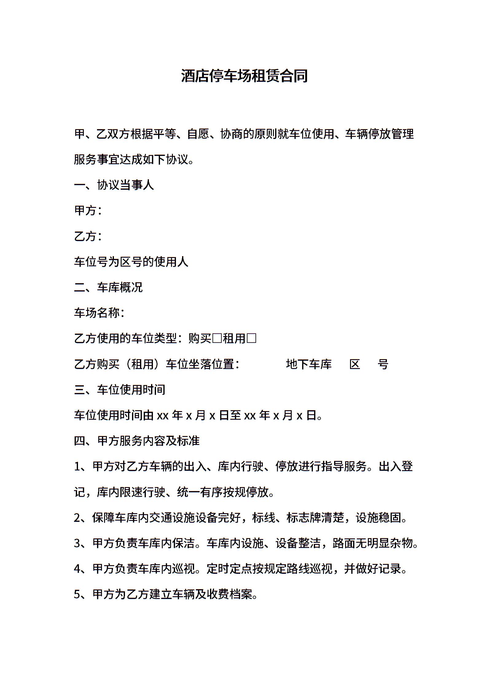 酒店停车场租赁合同