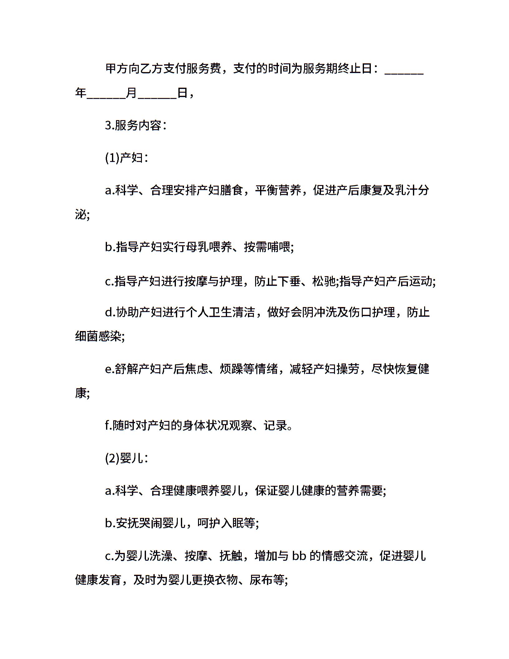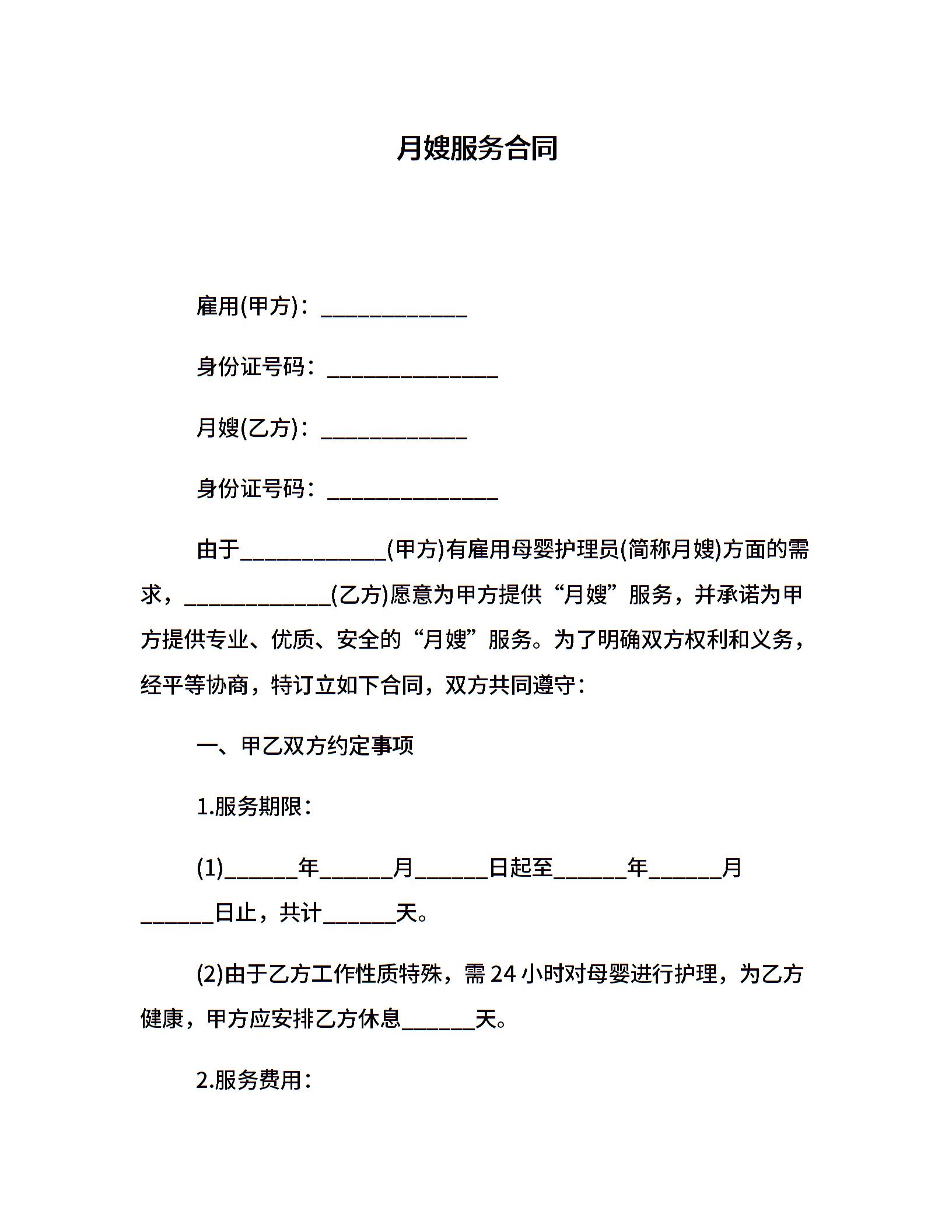 月嫂服务合同