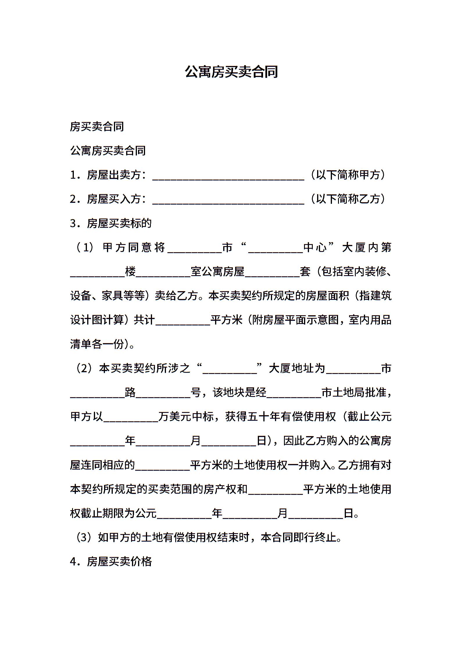 公寓房买卖合同