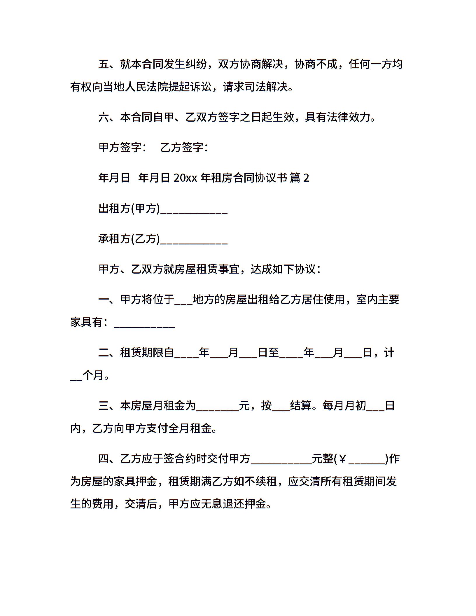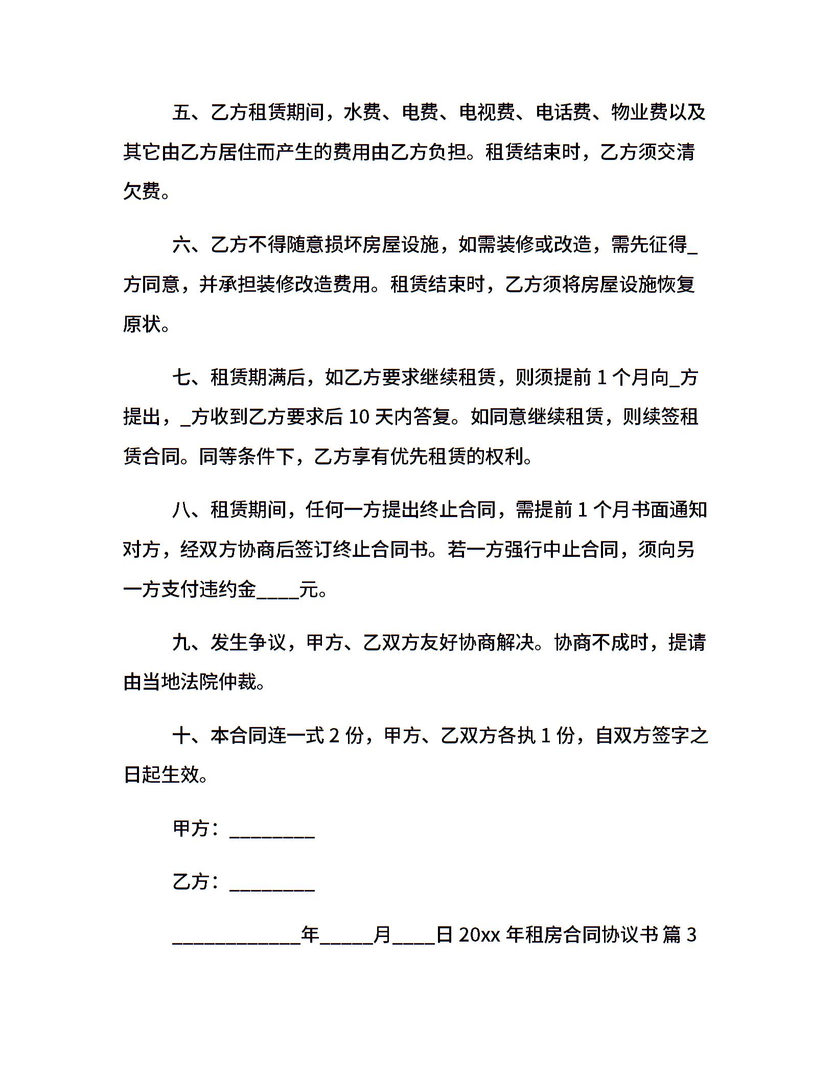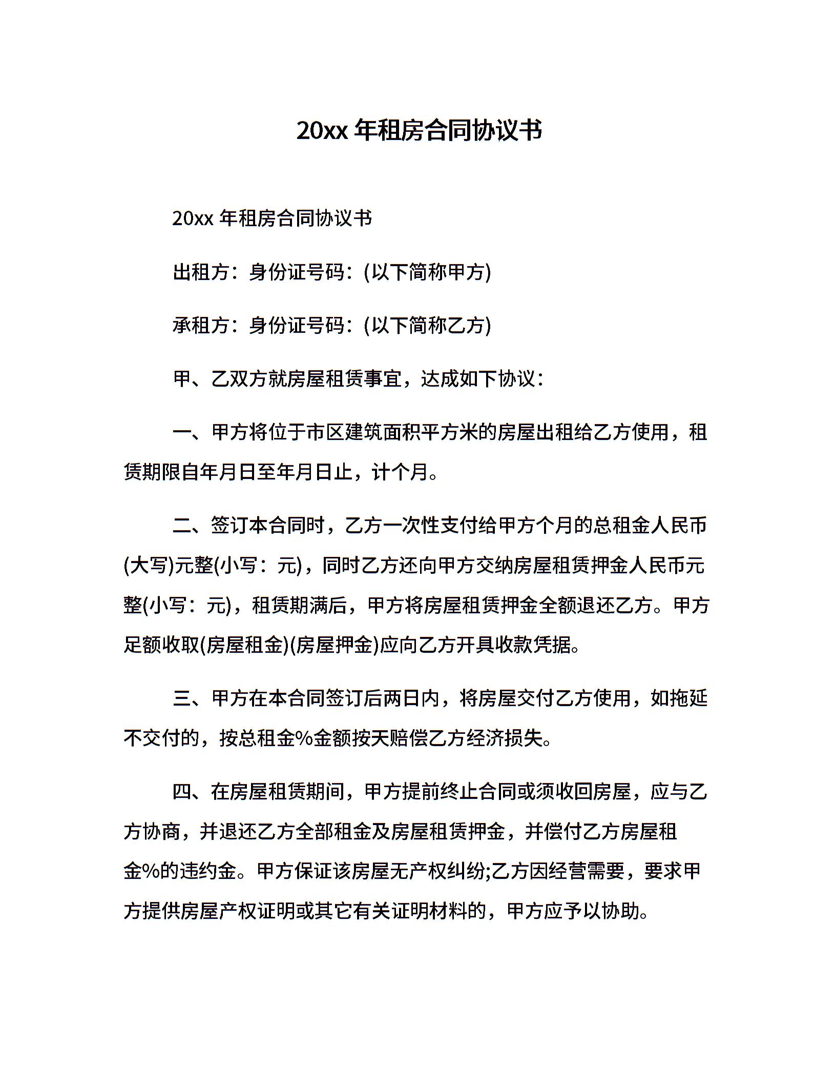 20xx年租房合同协议书