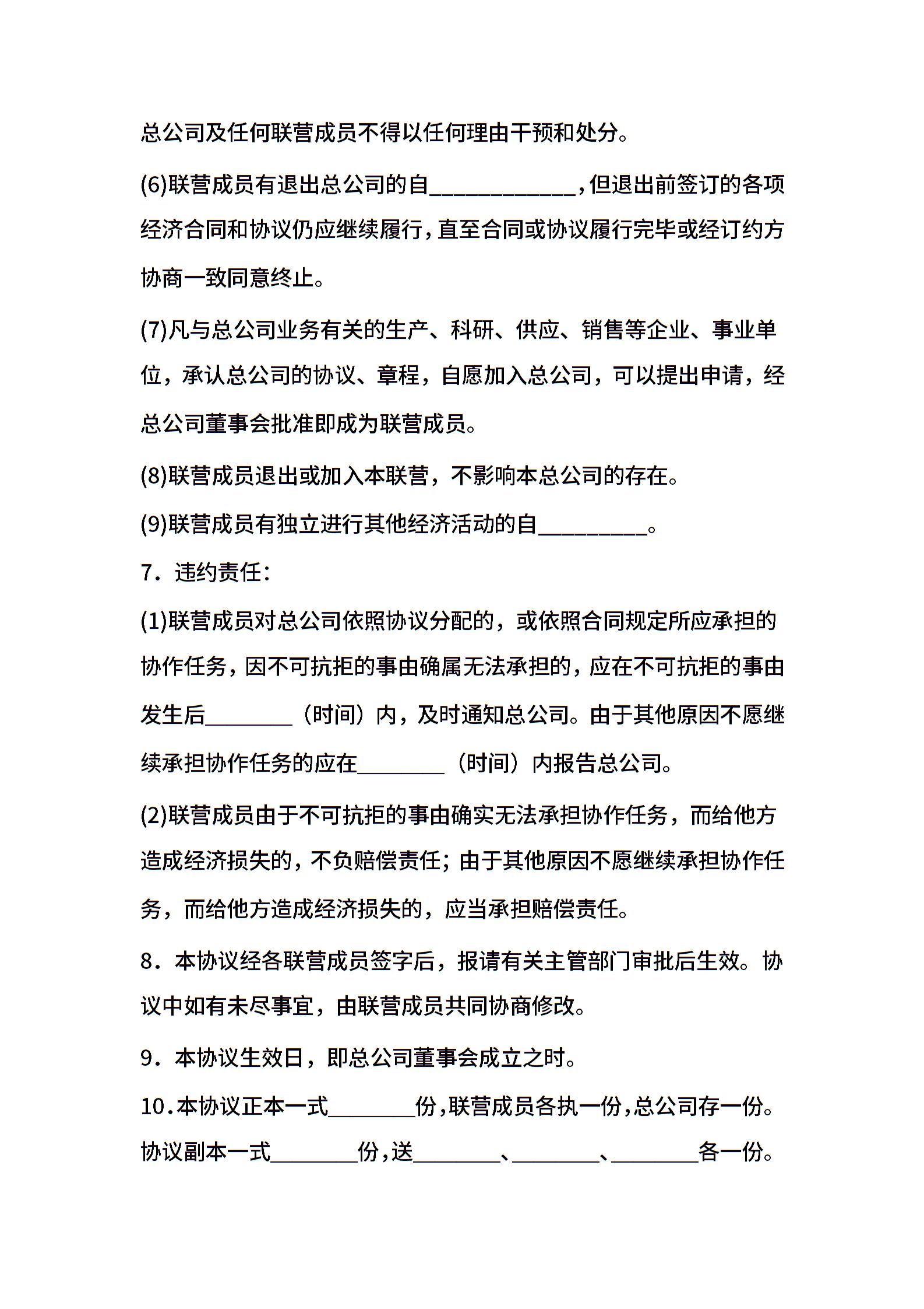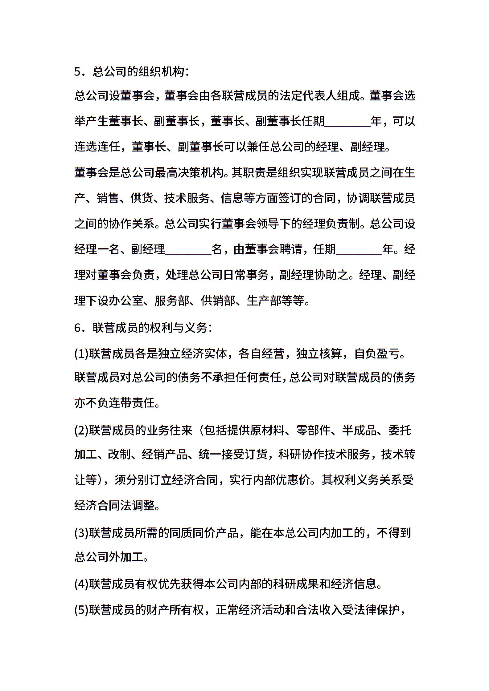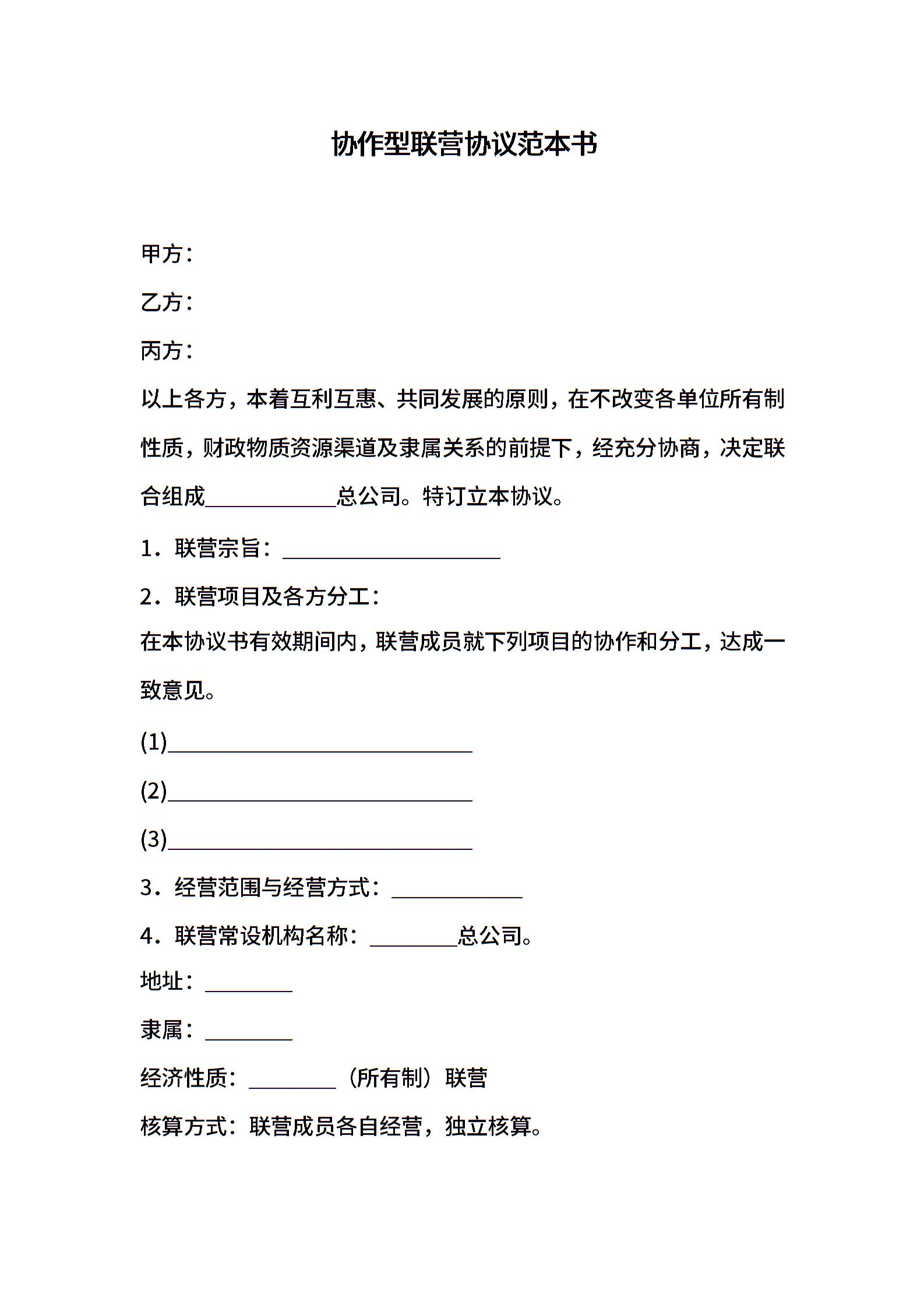 协作型联营协议范本书