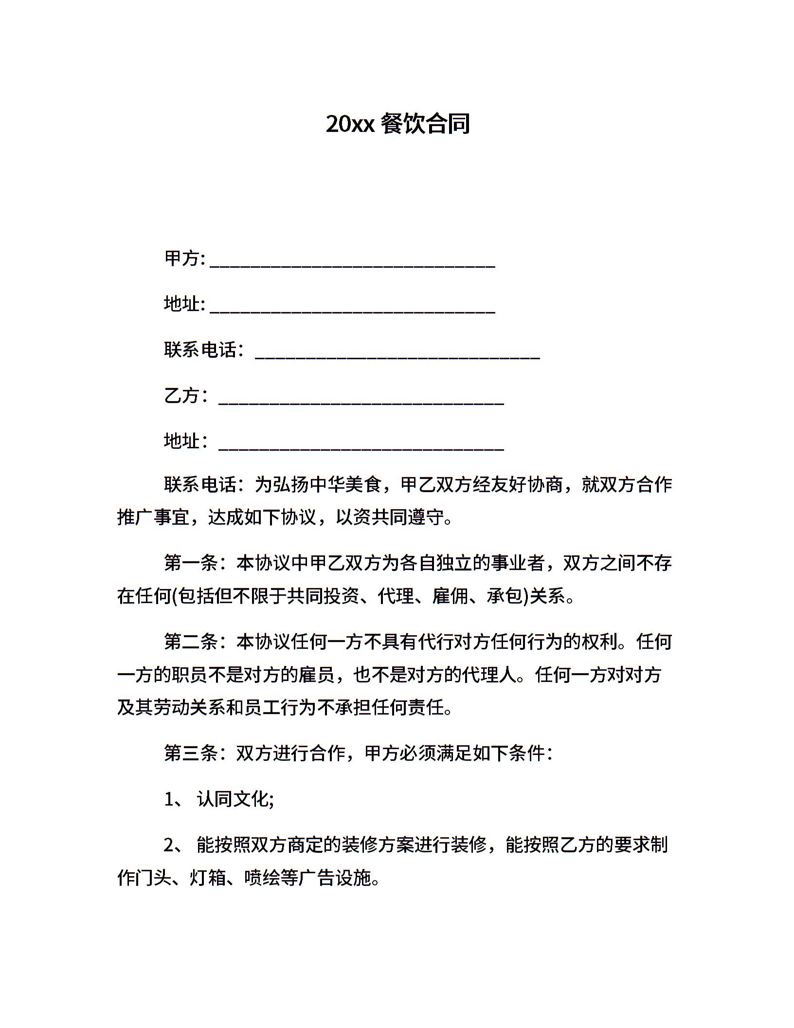 20xx餐饮合同