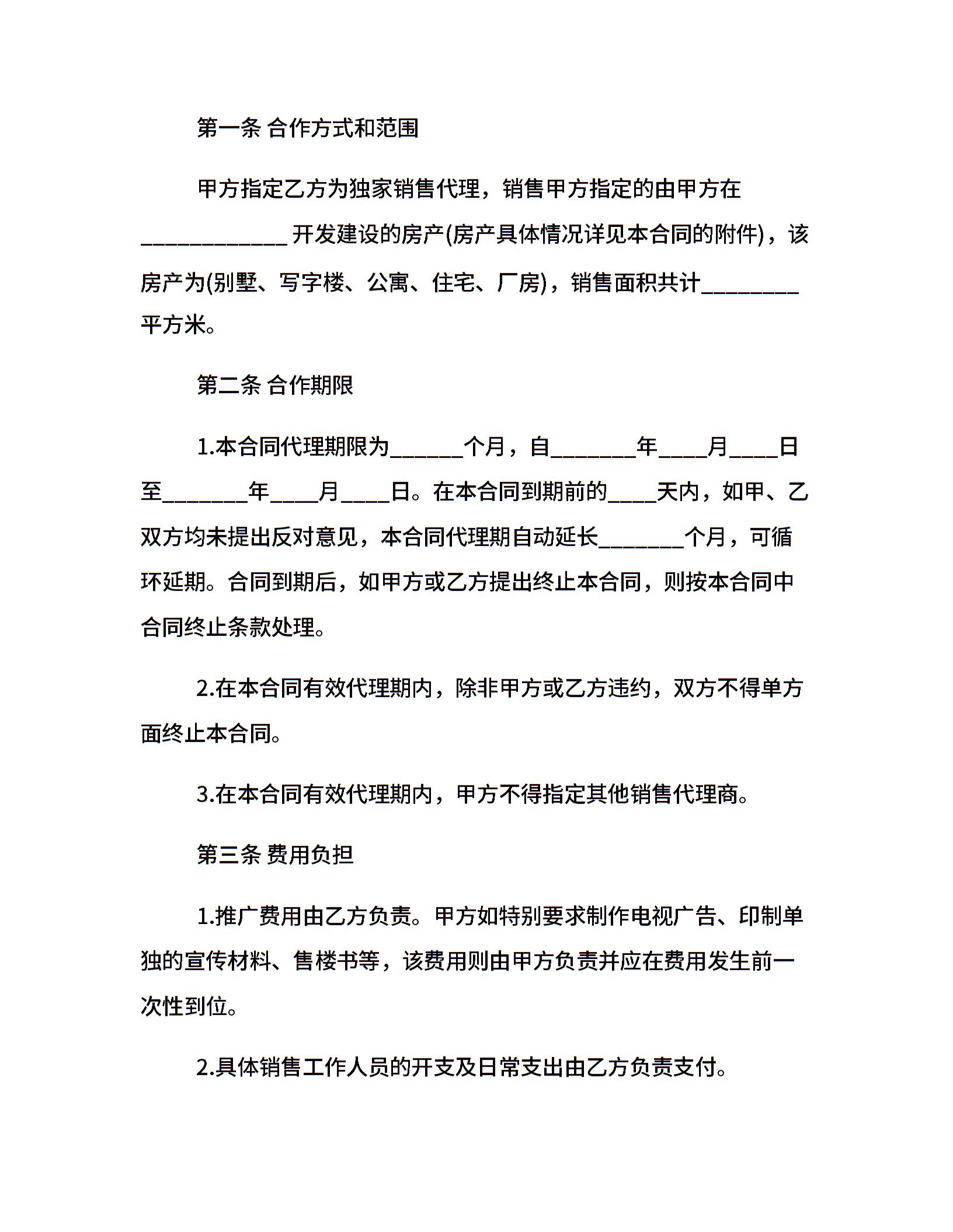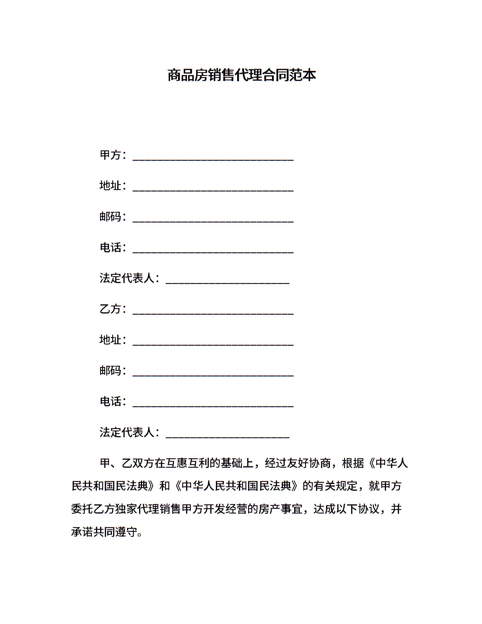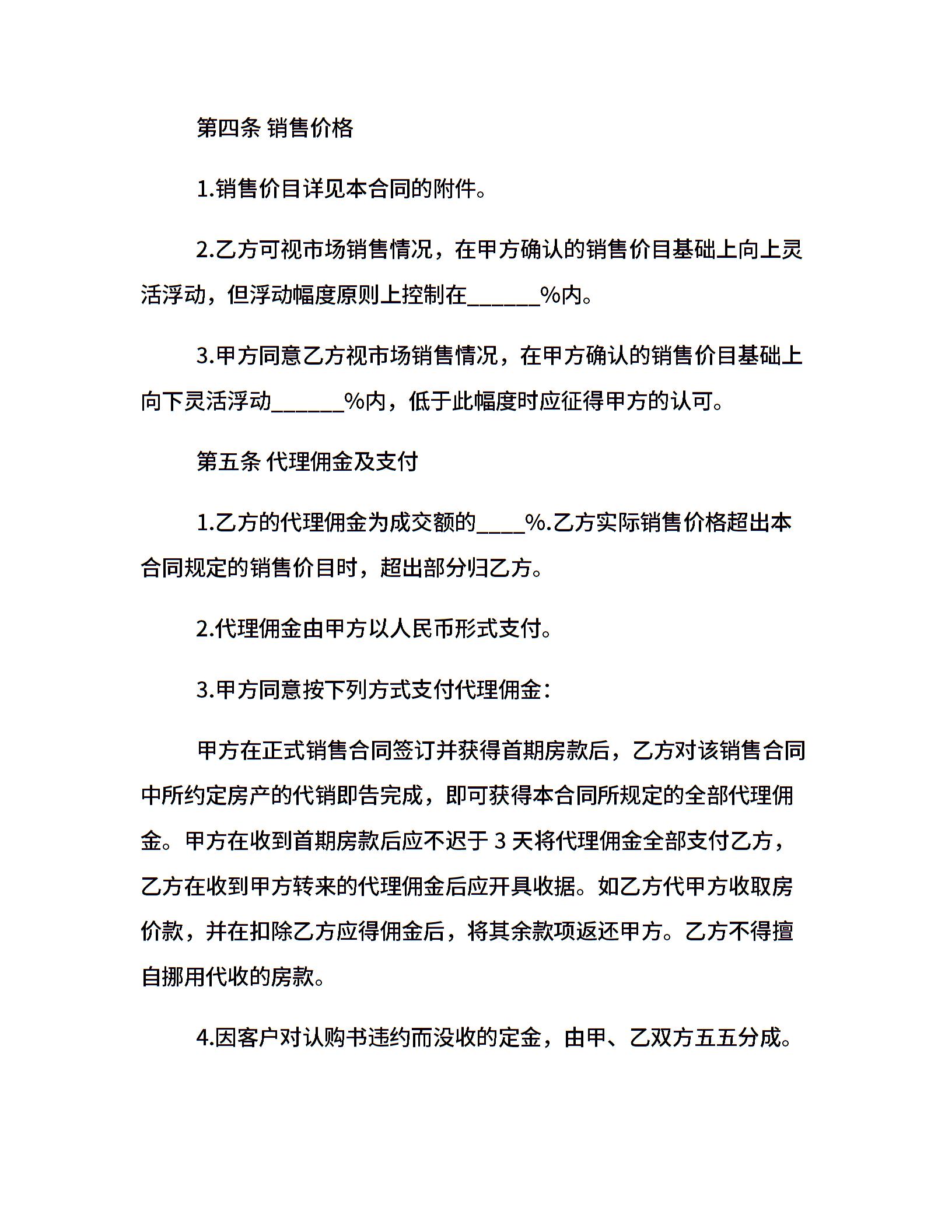 商品房销售代理合同范本