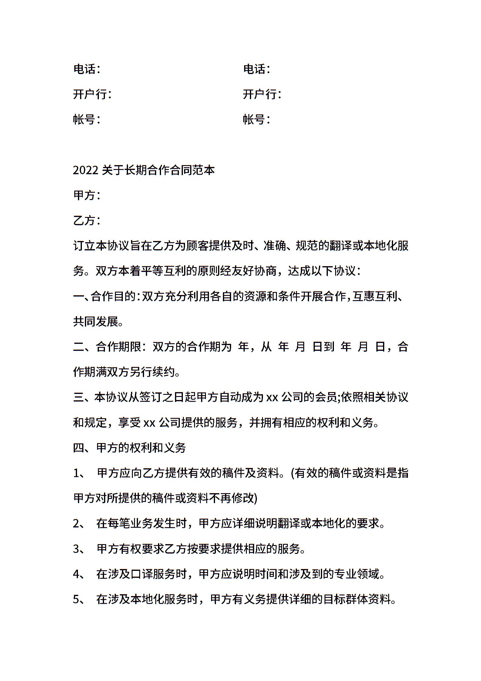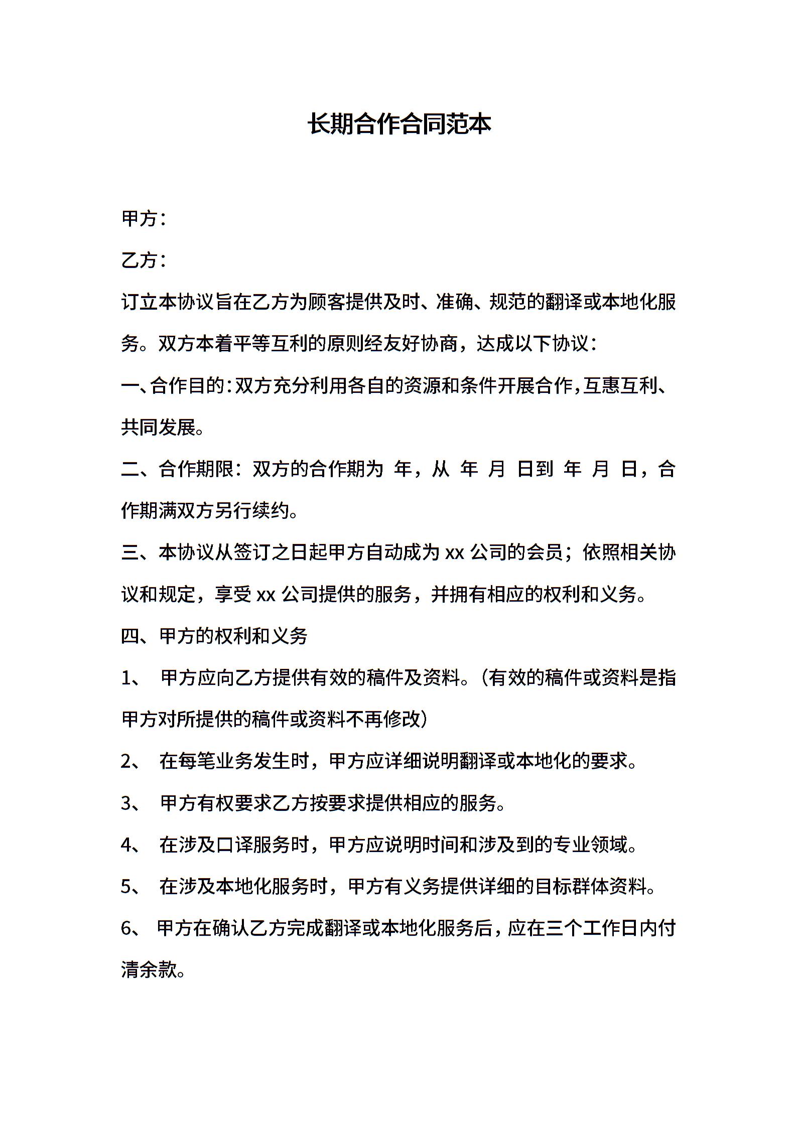 长期合作合同范本