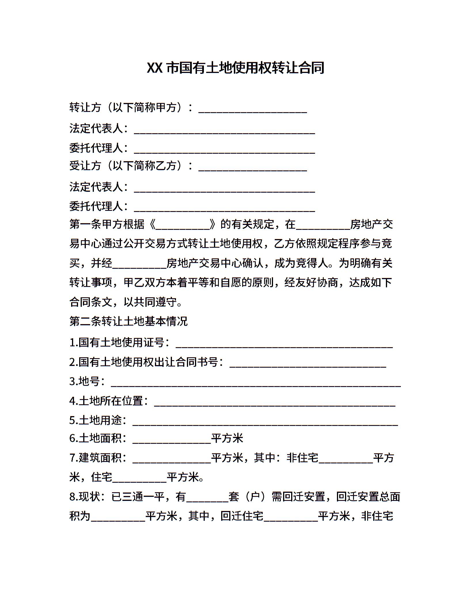 XX市国有土地使用权转让合同