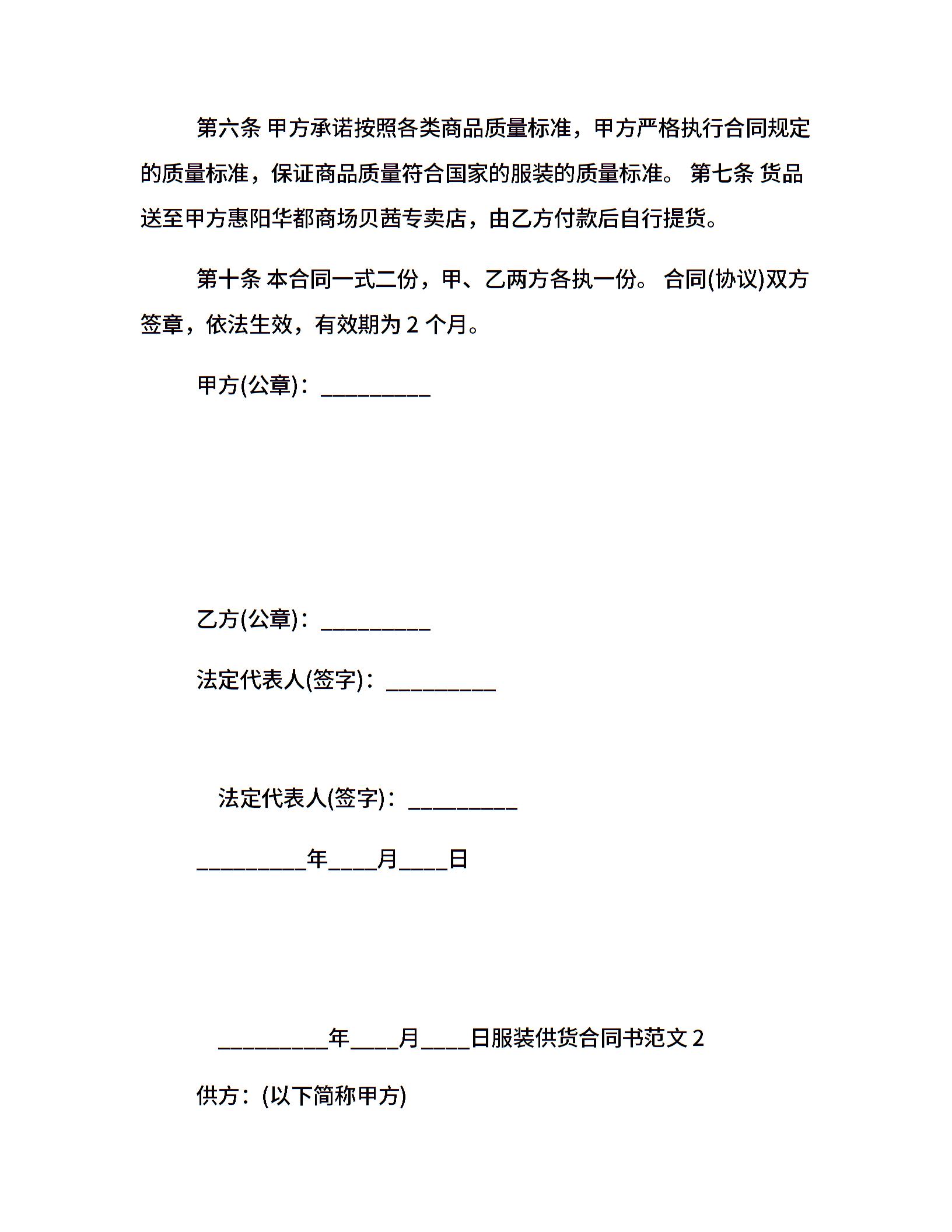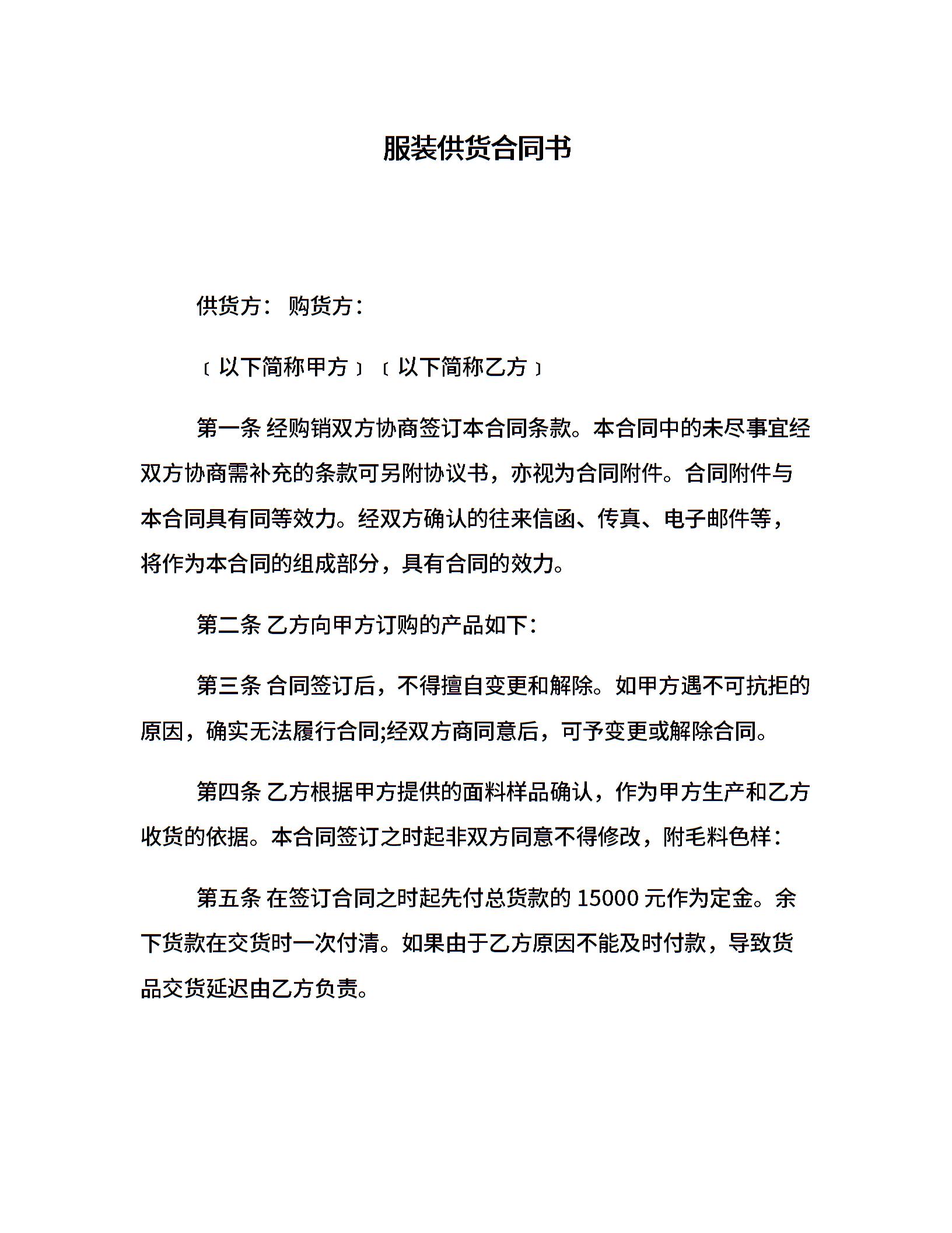 服装供货合同书