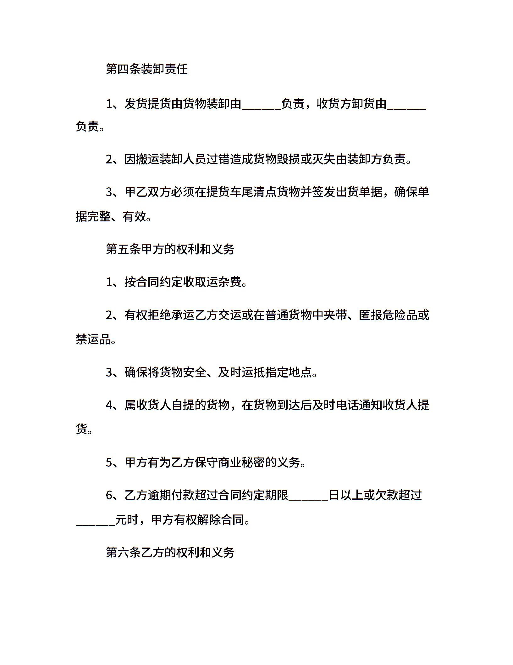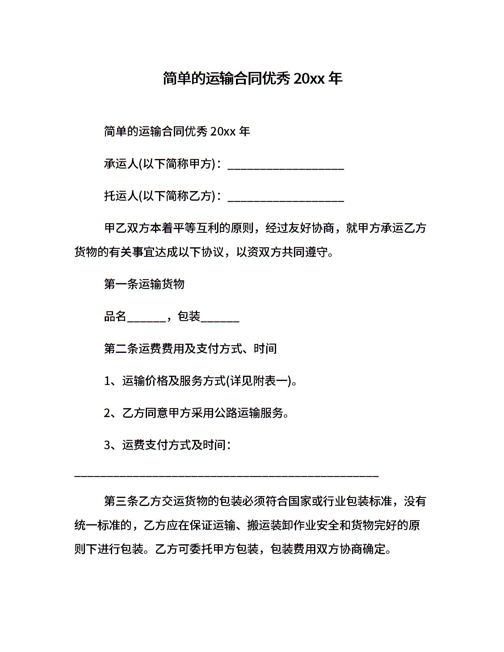 简单的运输合同优秀20xx年