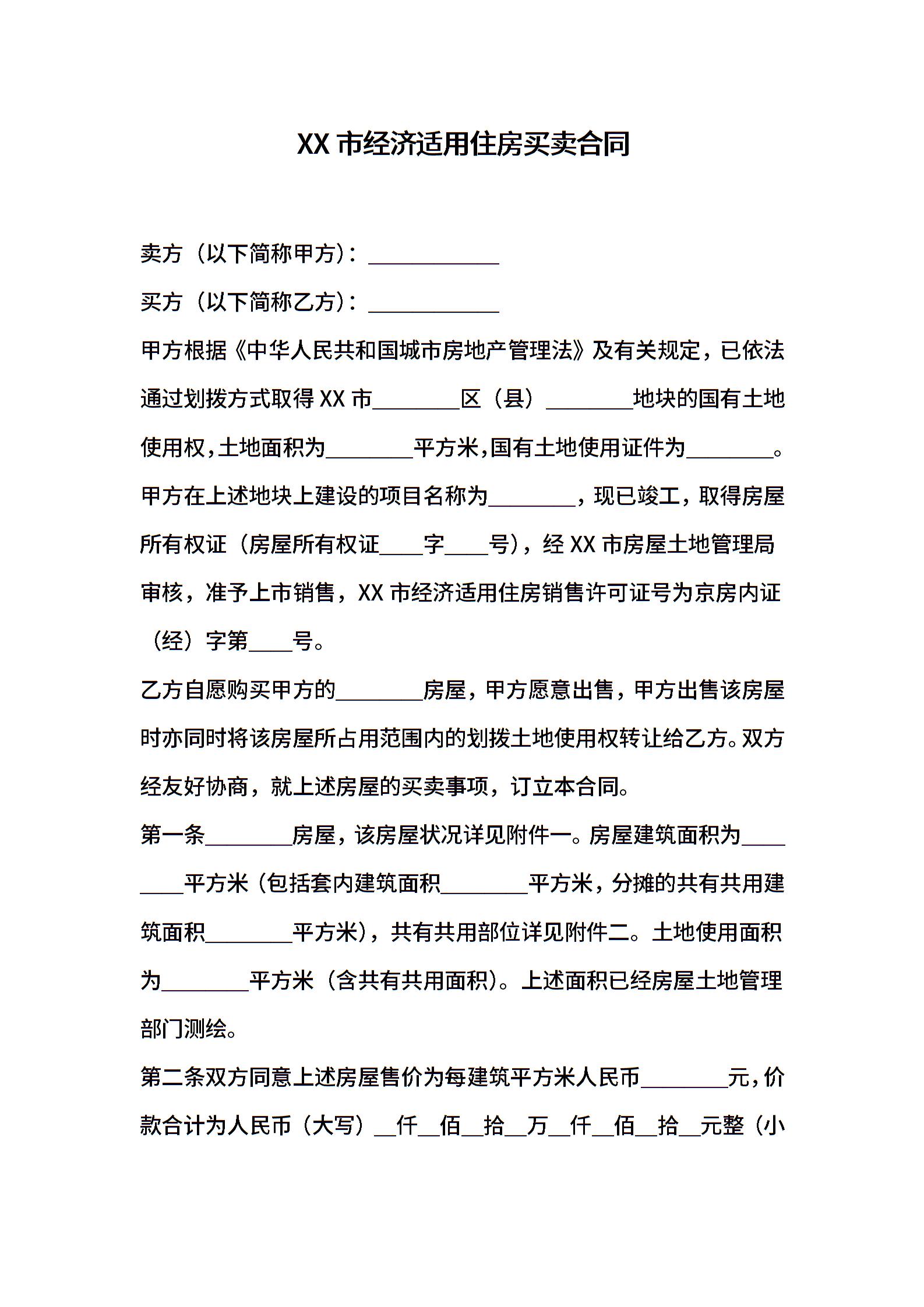 XX市经济适用住房买卖合同