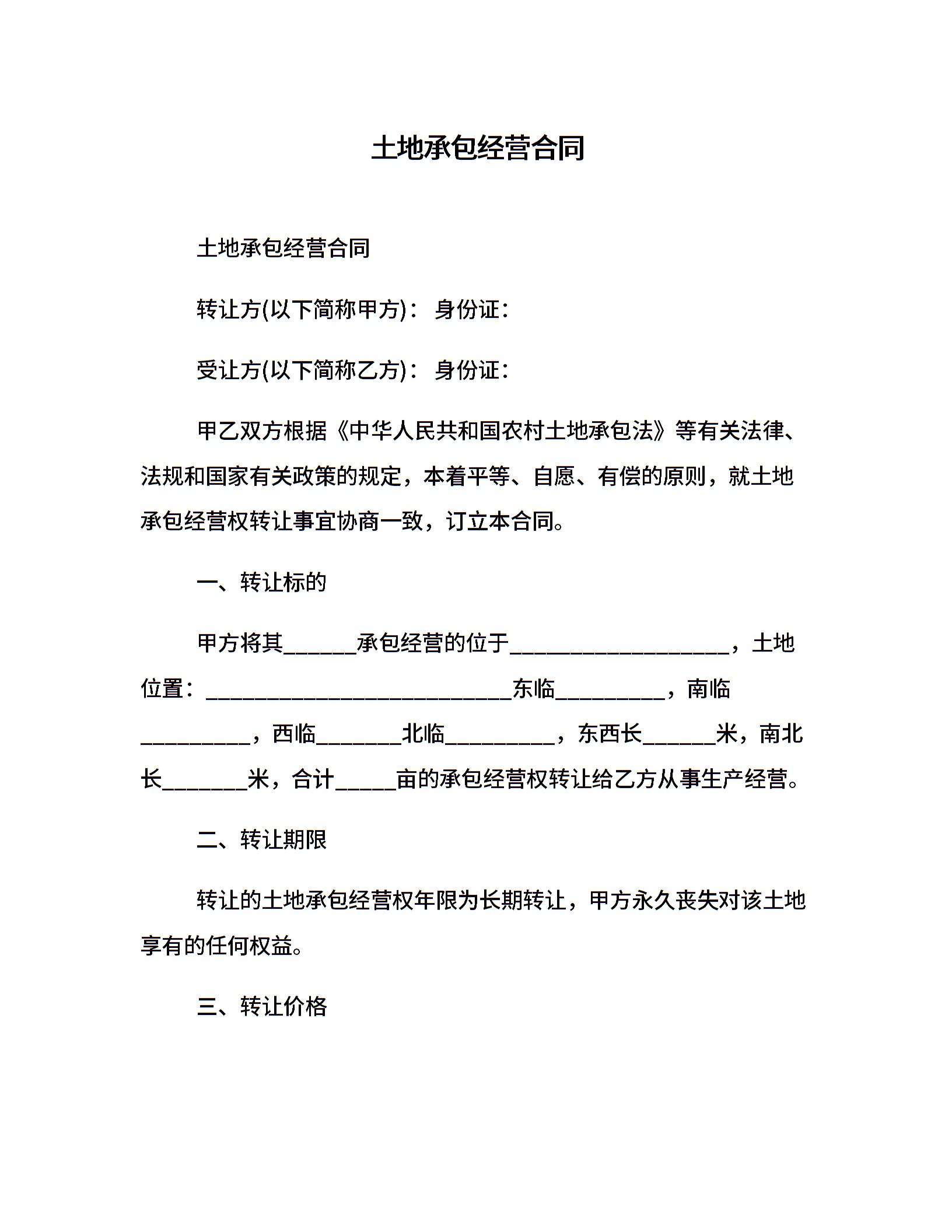 土地承包经营合同