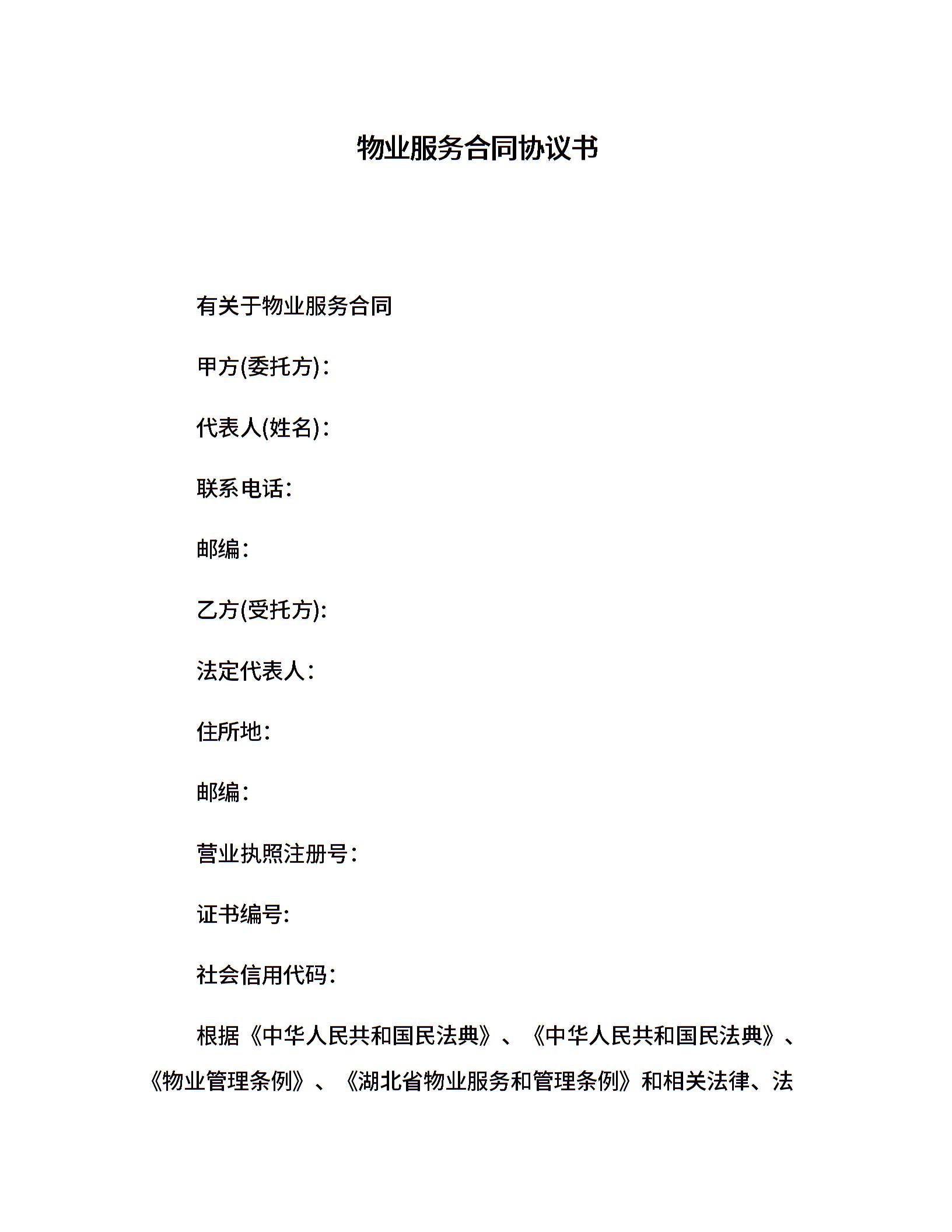 物业服务合同协议书