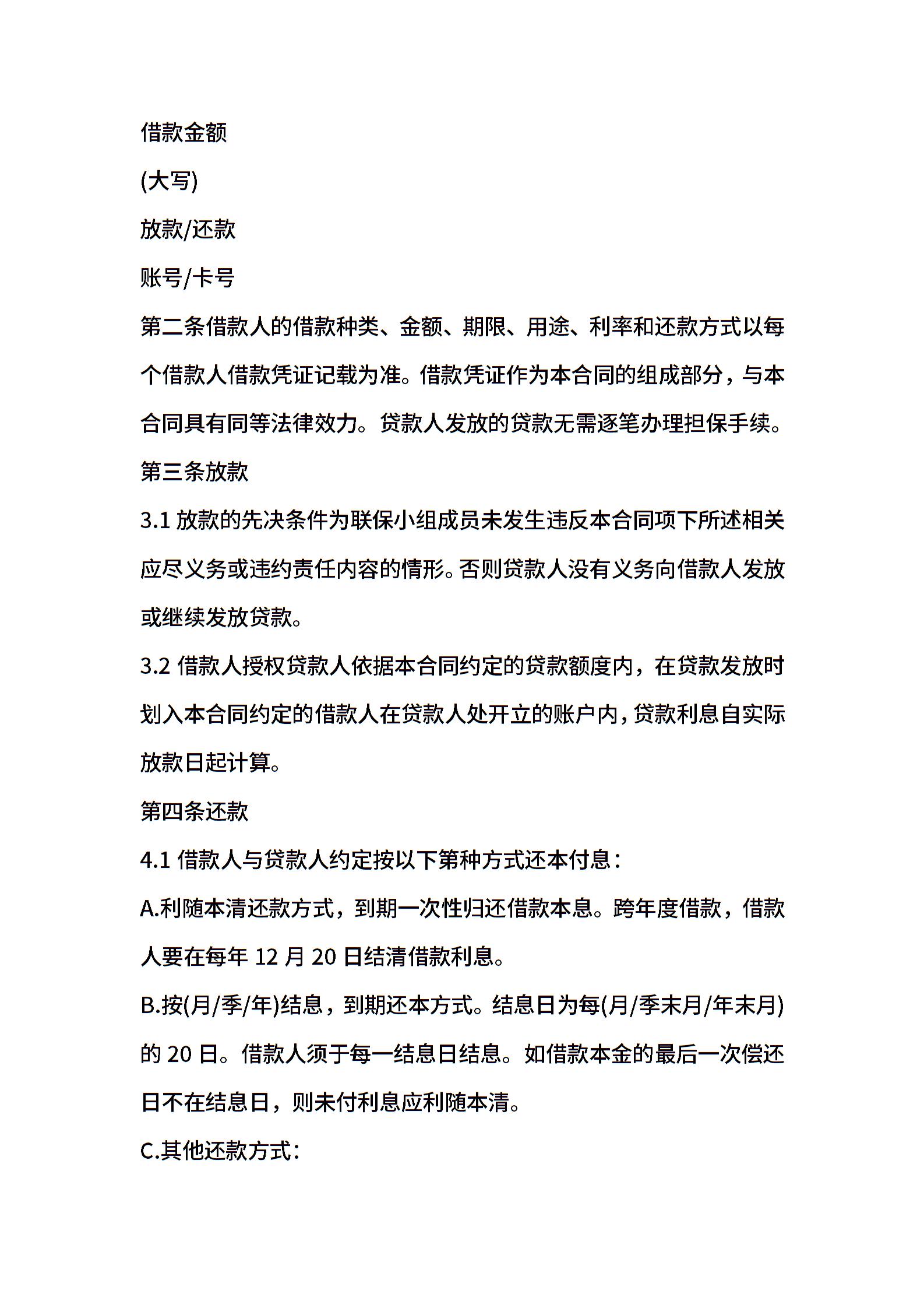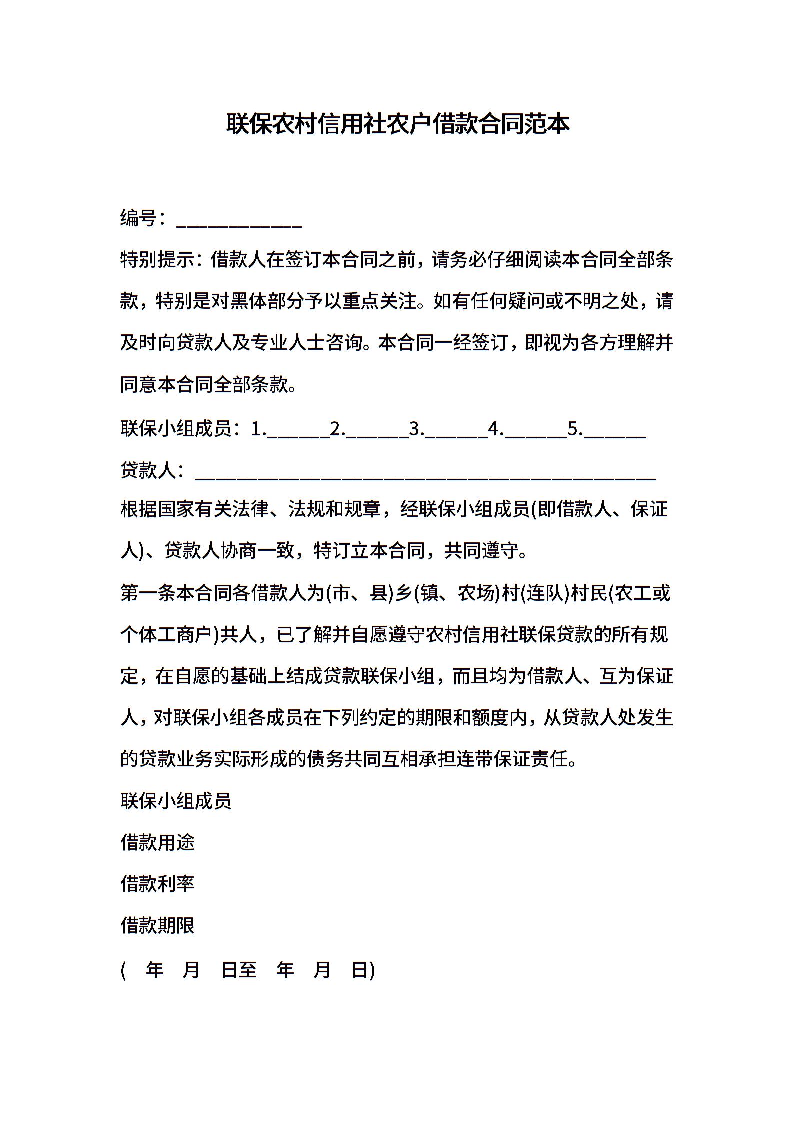 联保农村信用社农户借款合同范本