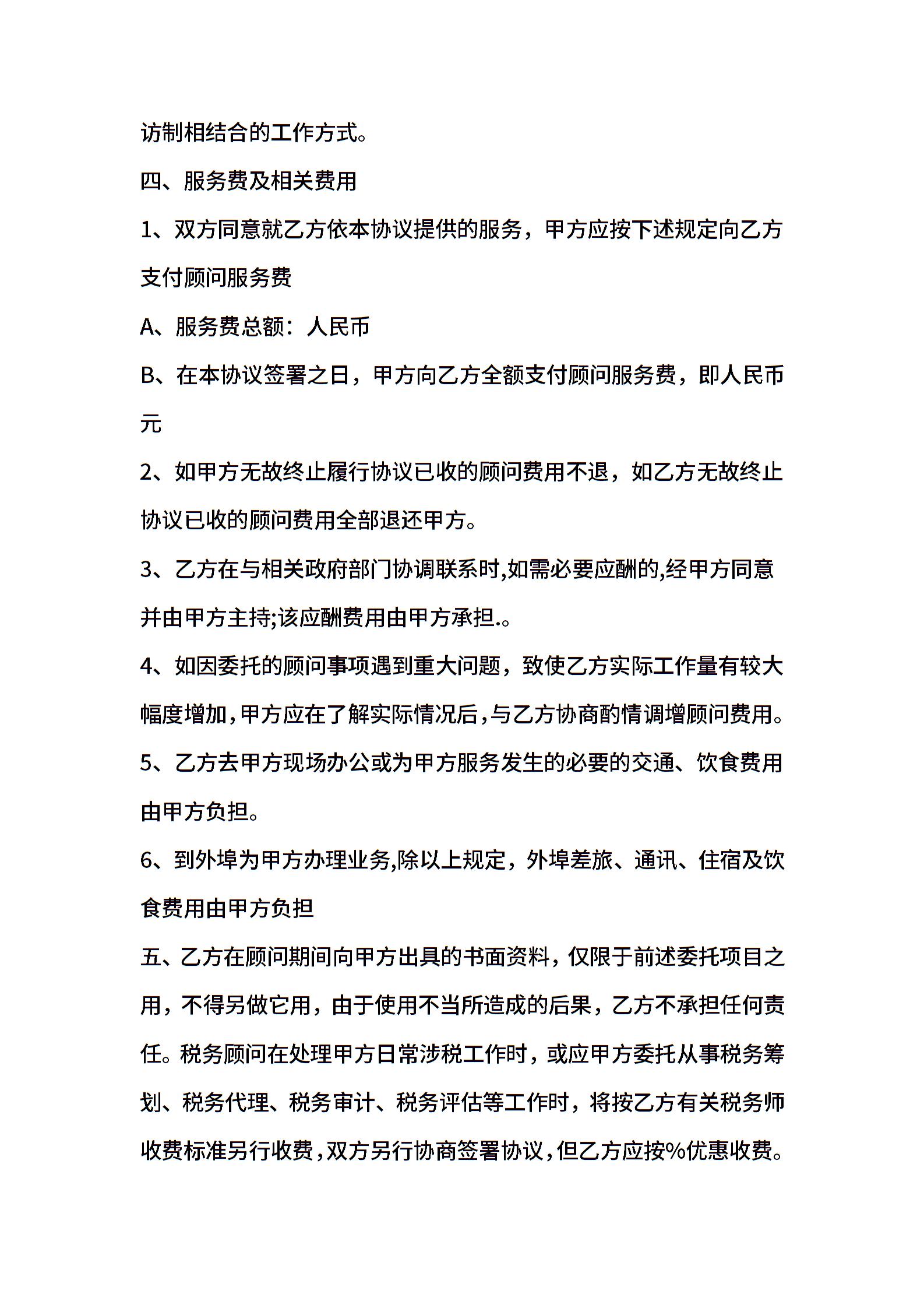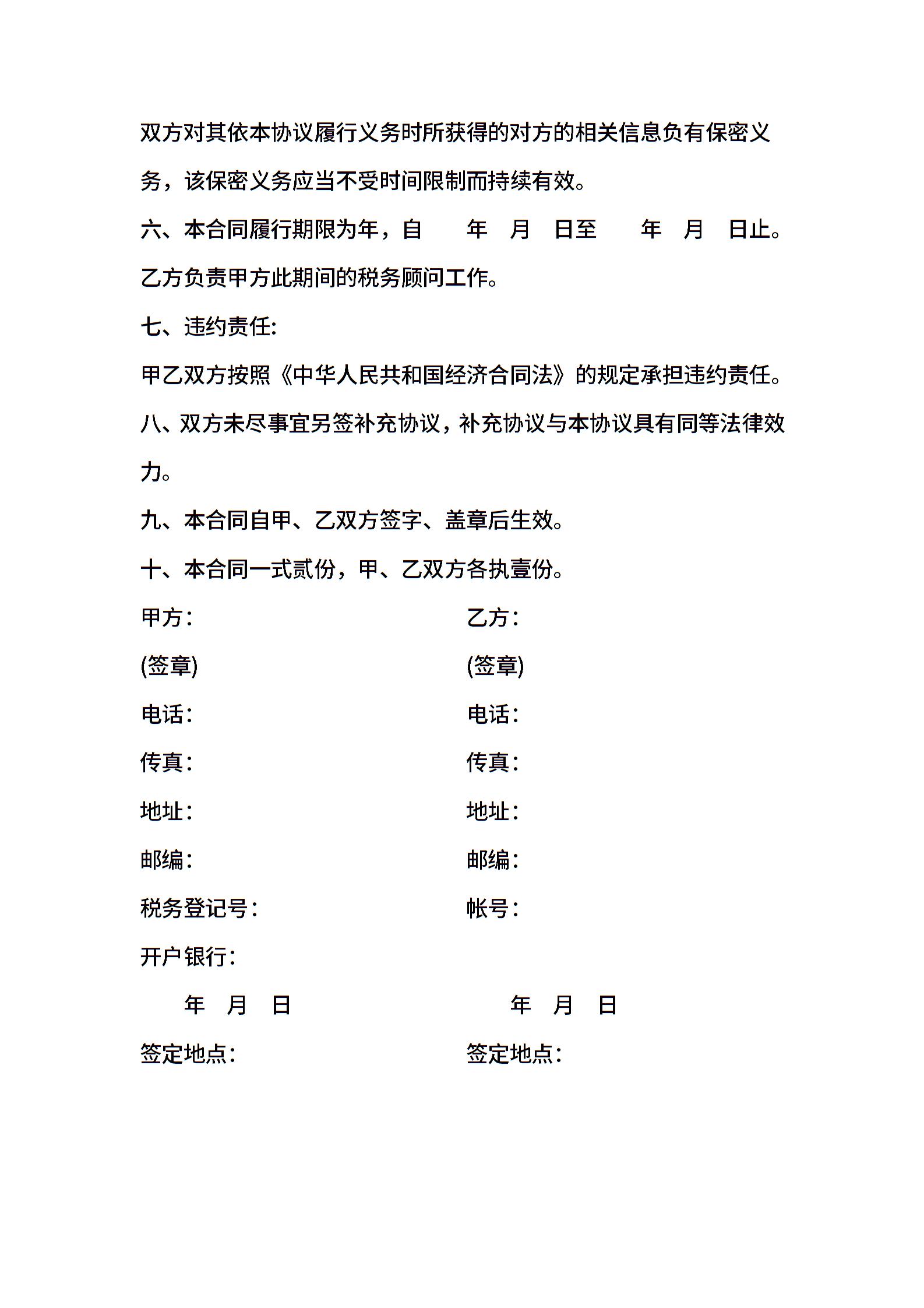 常年财税顾问的协议
